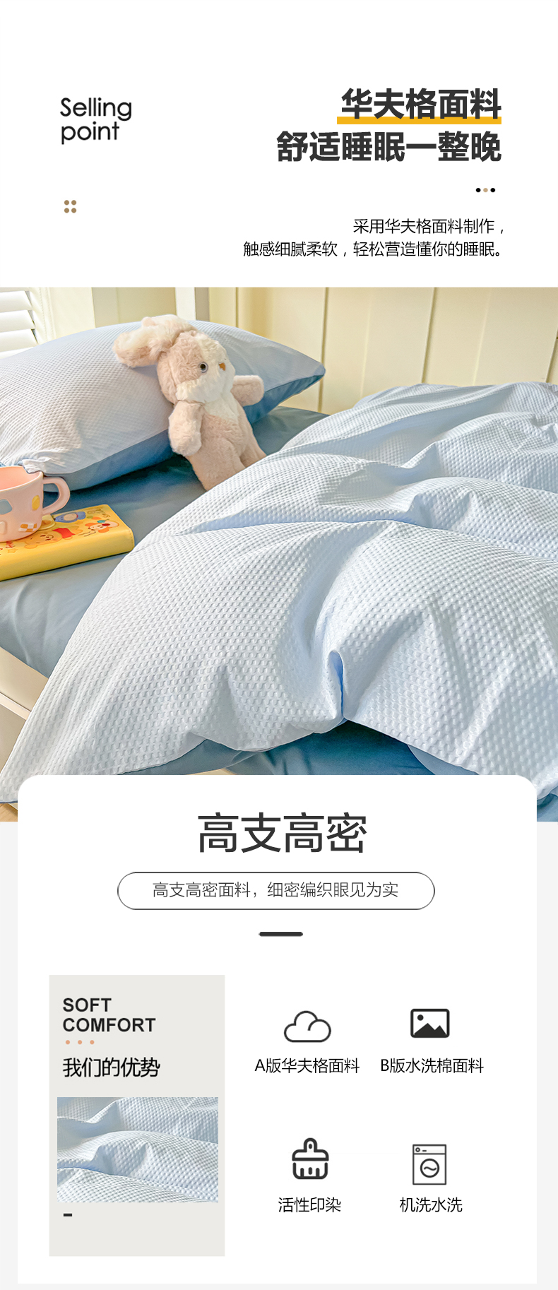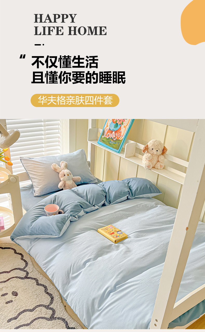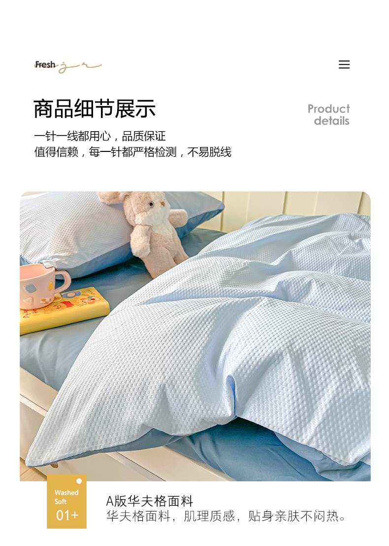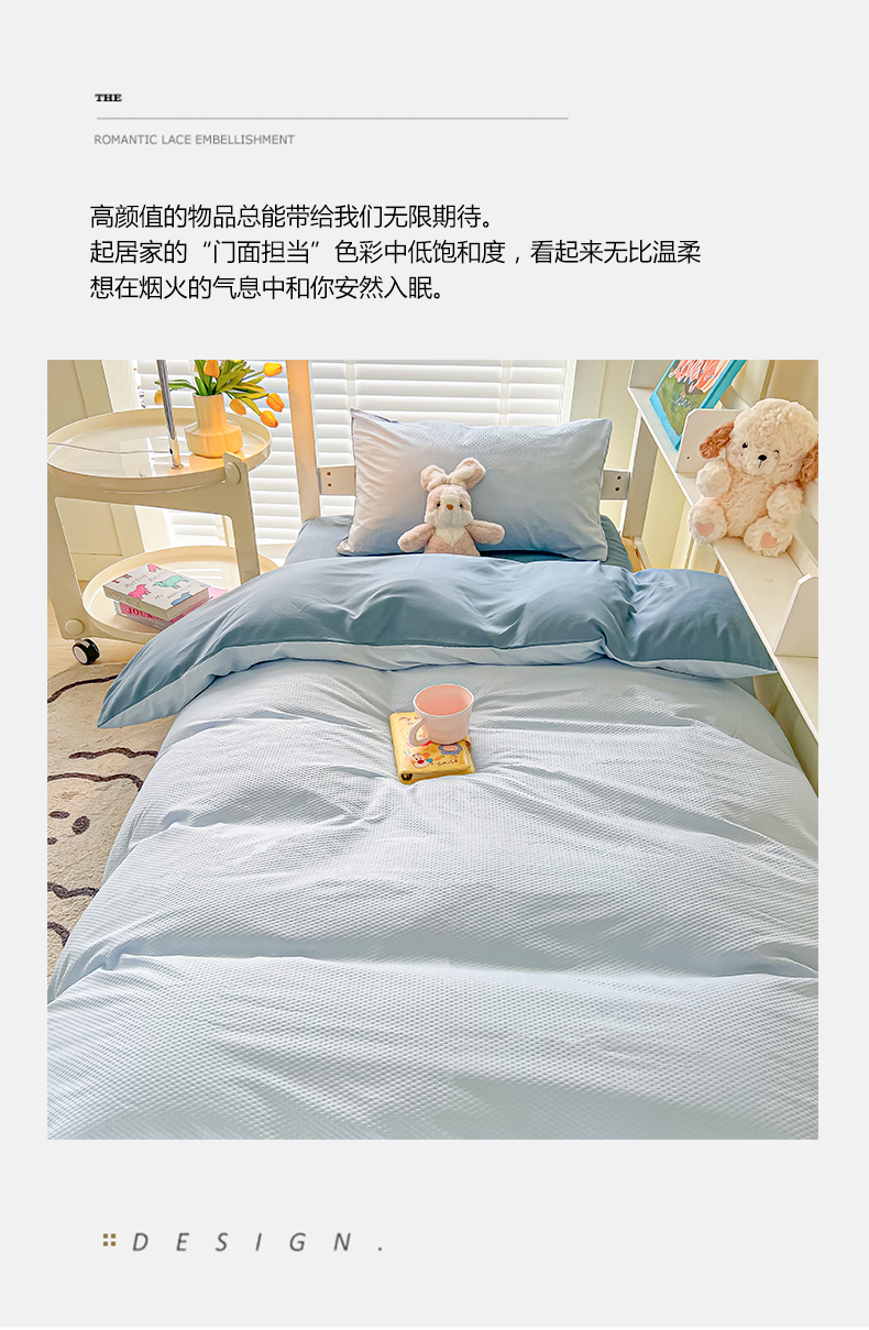 当前位置: 91家纺网 > 商品网购 > 床品套件 > 四件套 > 水洗棉四件套 > 悦织湾家纺 2025新款华夫格压泡亲肤学生宿舍三件套单人床轻奢时尚四件套 华夫格压泡-天空兰+雾兰