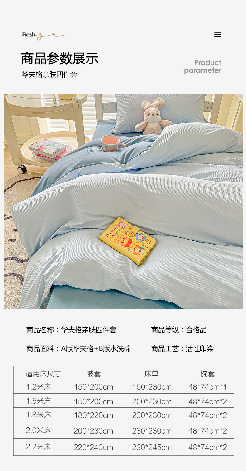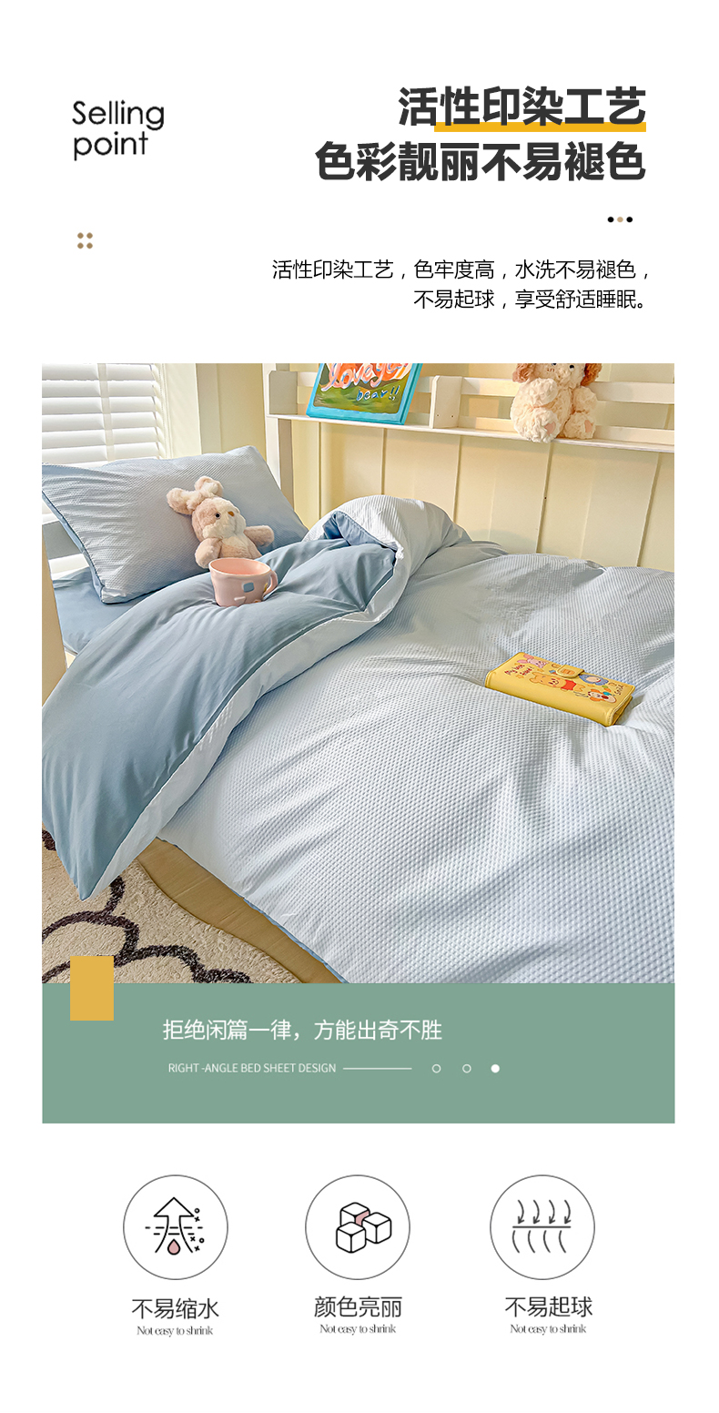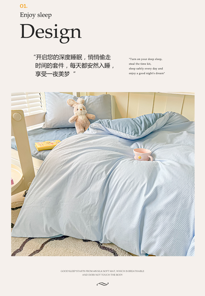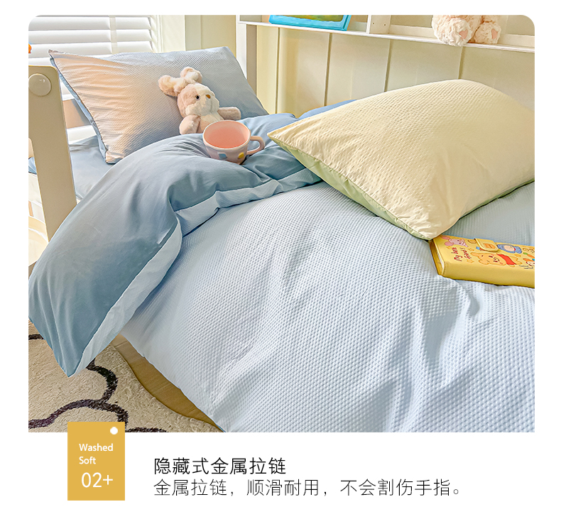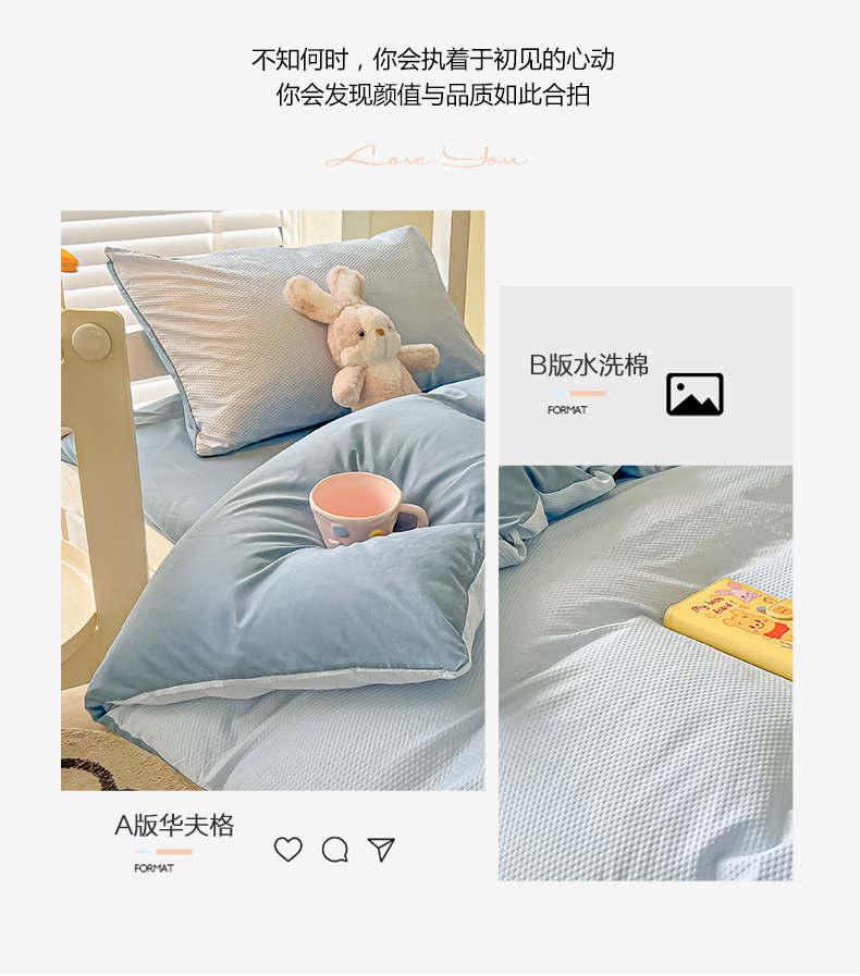 当前位置: 91家纺网 > 商品网购 > 床品套件 > 四件套 > 水洗棉四件套 > 悦织湾家纺 2025新款华夫格压泡亲肤学生宿舍三件套单人床轻奢时尚四件套 华夫格压泡-天空兰+雾兰
