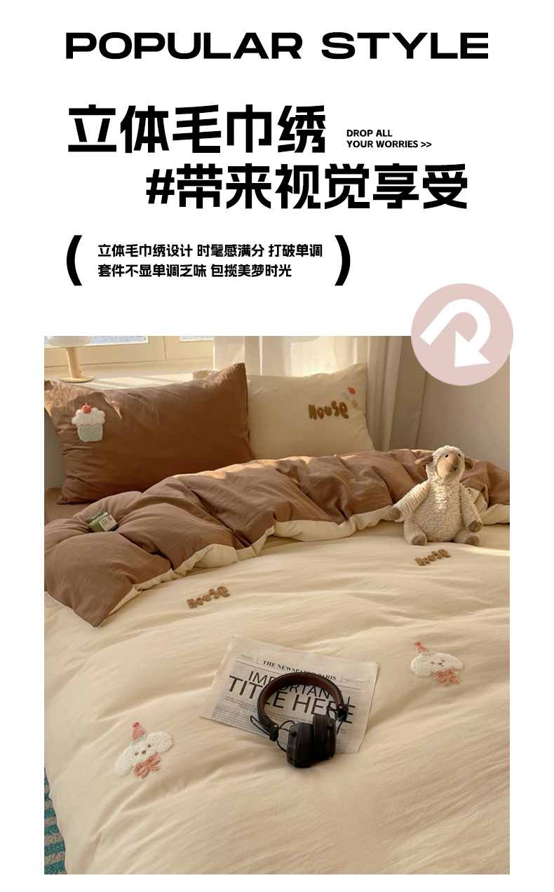 当前位置: 91家纺网 > 商品网购 > 床品套件 > 四件套 > 水洗棉四件套 > 阿曼达 2025新款爆款超甜可爱酷美毛巾绣软糯糯可以裸睡的水洗m纯色格子双拼四件套 甜心小狗-杏咖