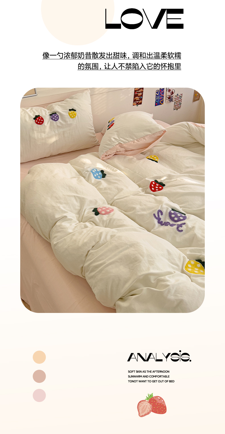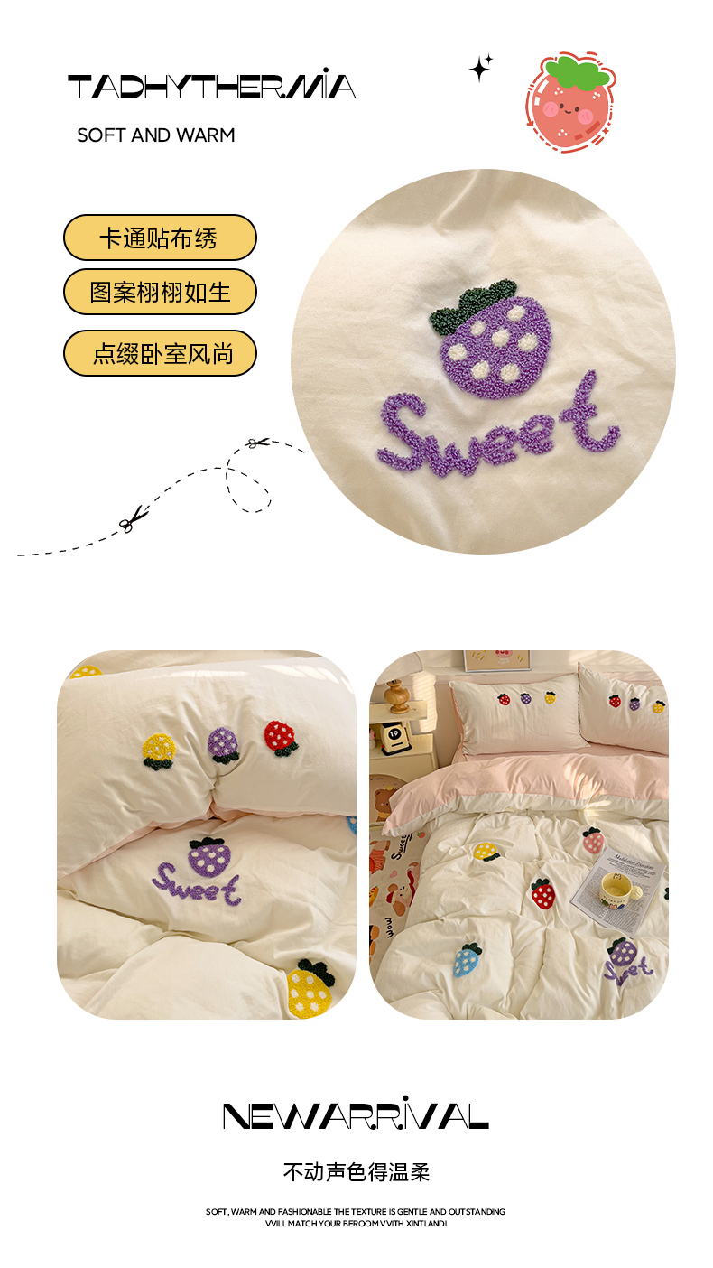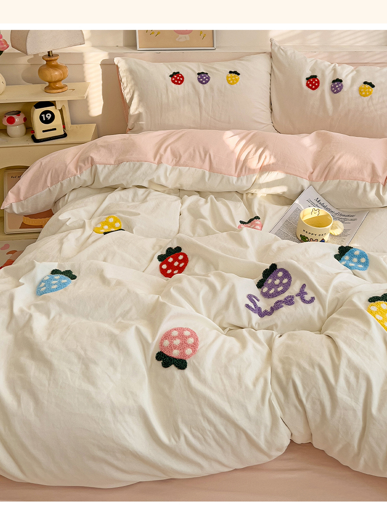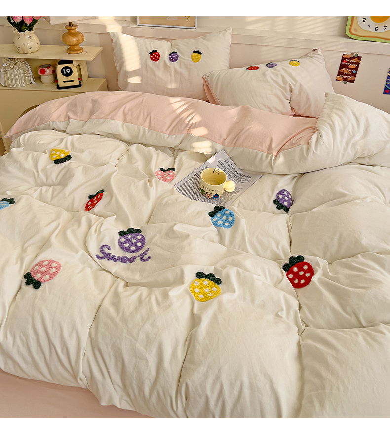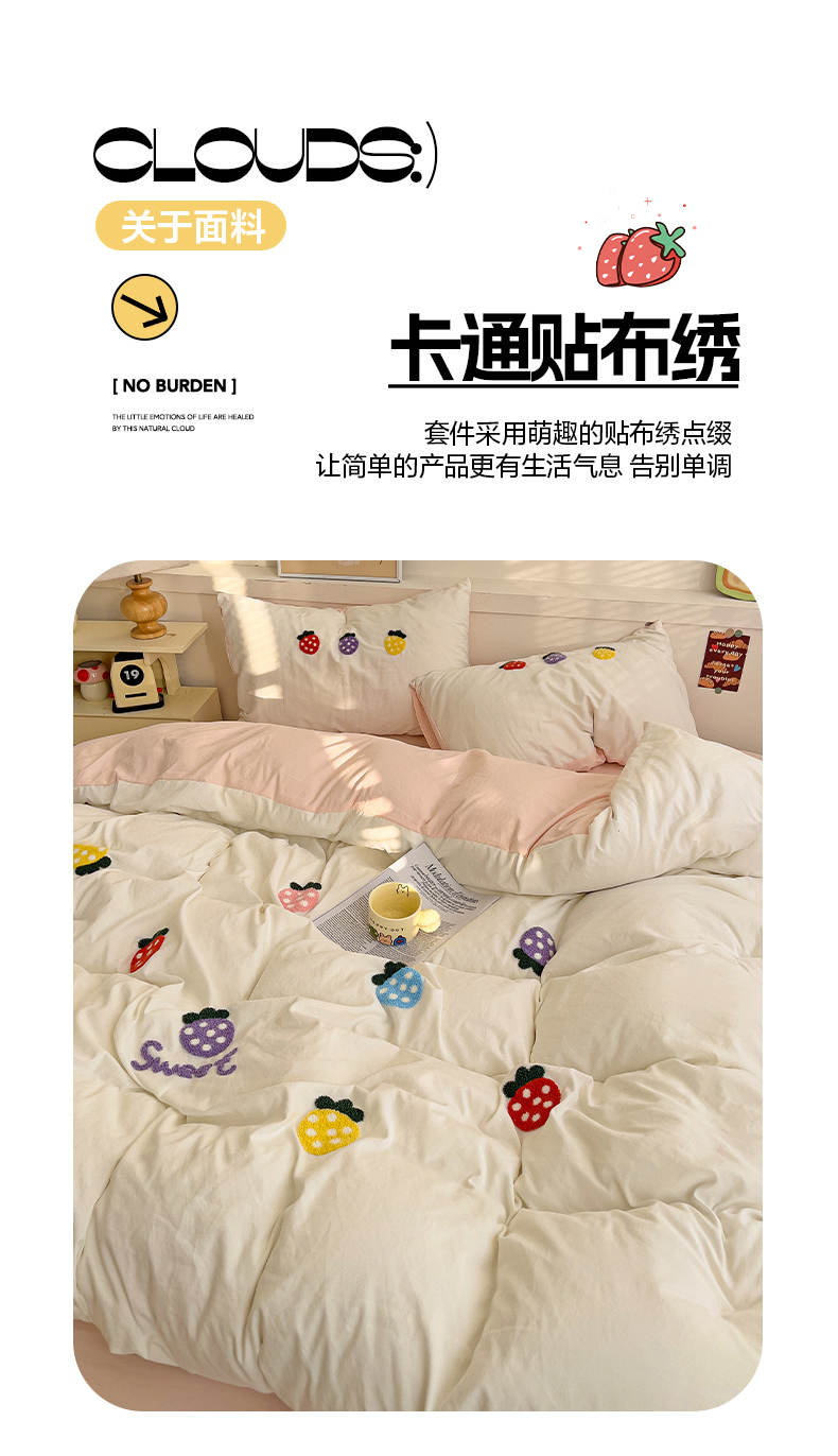 当前位置: 91家纺网 > 商品网购 > 床品套件 > 四件套 > 水洗棉四件套 > 逸尚阁 2025新款小清新毛巾绣四件套(提供买家秀) 草莓-白粉