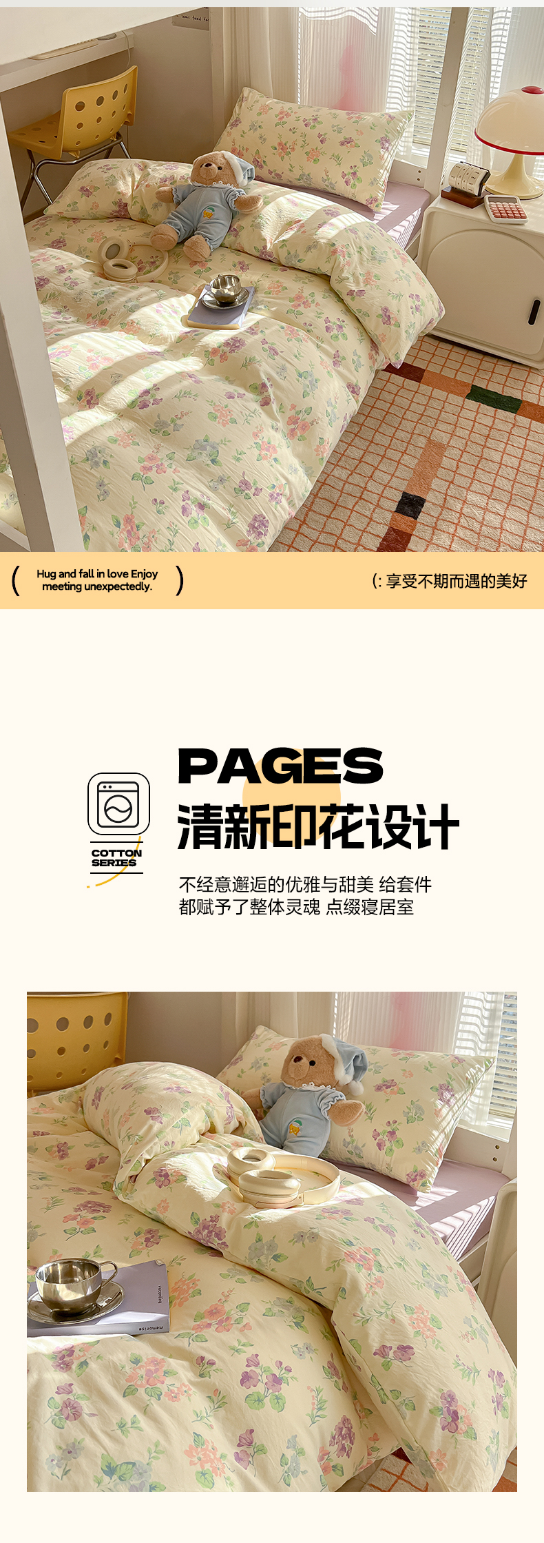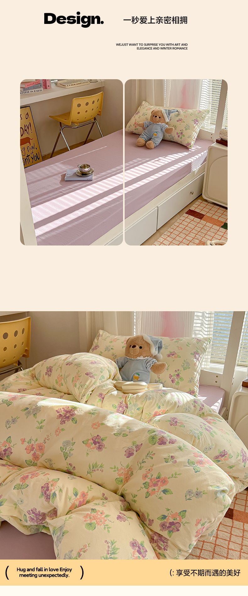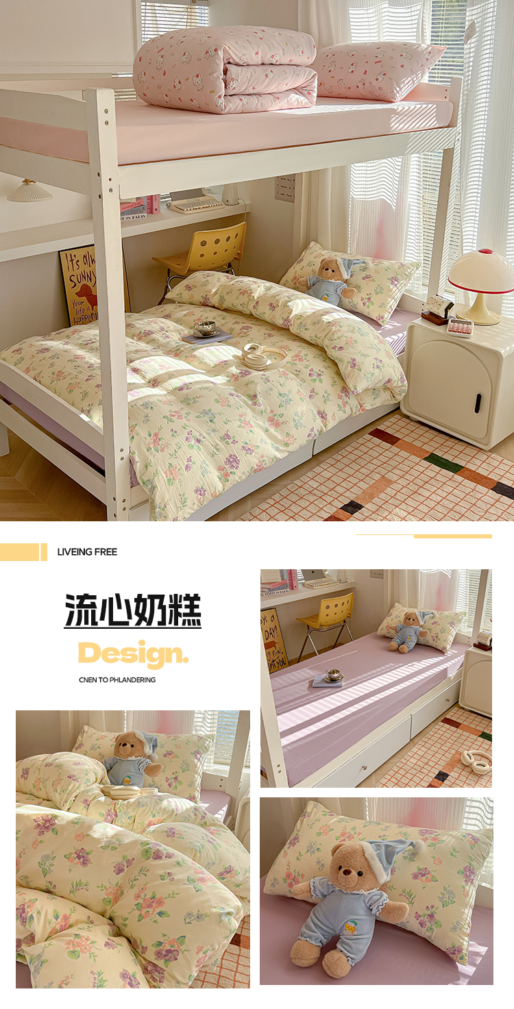 当前位置: 91家纺网 > 商品网购 > 床品套件 > 四件套 > 其它四件套 > 韩巢家纺 2025新款超柔水洗棉学生宿舍寝室被套床单三件套 流心奶糕