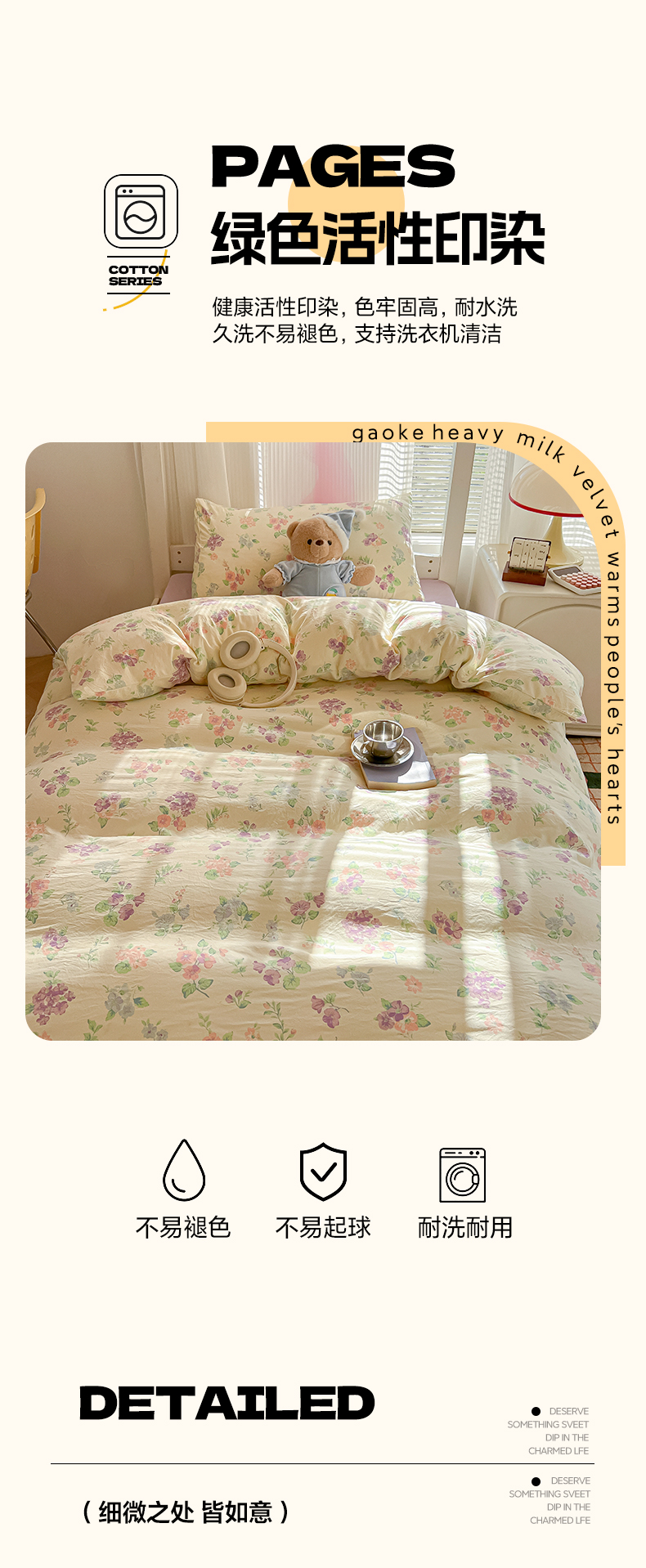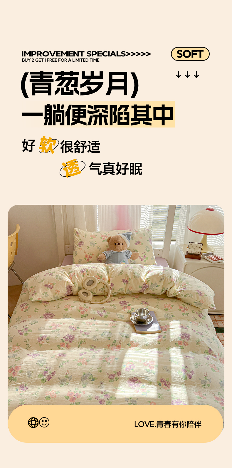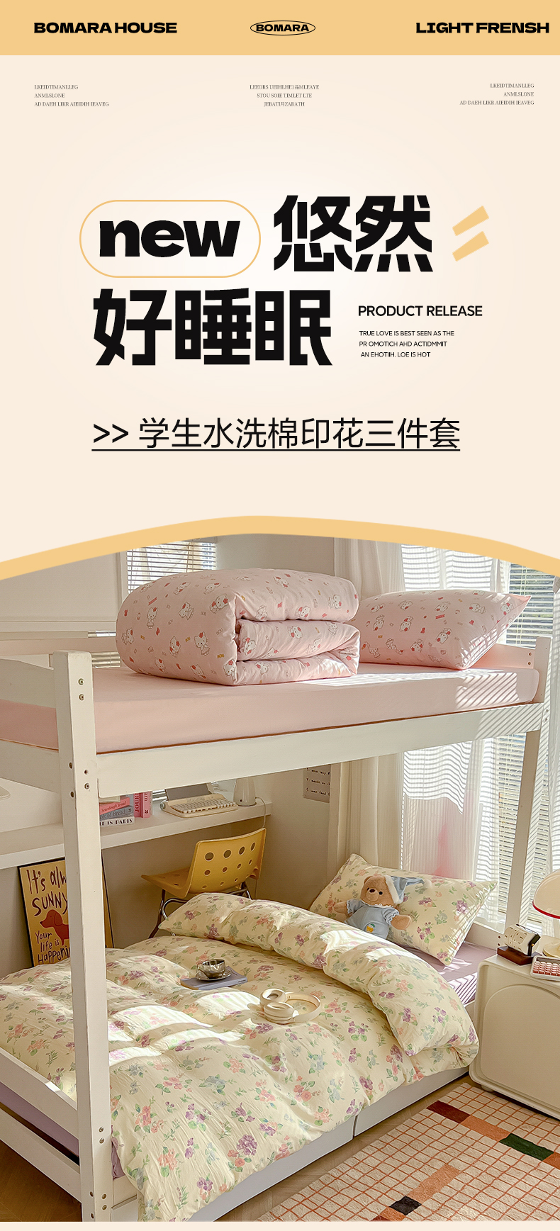 当前位置: 91家纺网 > 商品网购 > 床品套件 > 四件套 > 其它四件套 > 韩巢家纺 2025新款超柔水洗棉学生宿舍寝室被套床单三件套 流心奶糕