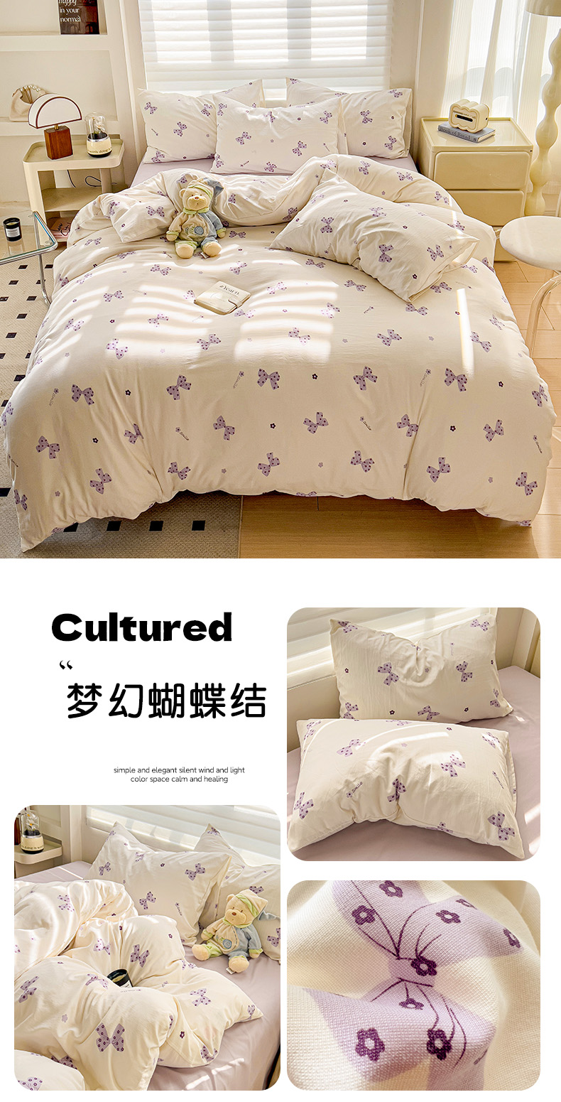 (总)源莱 2025开学季小清新卡通时尚印花水洗双层纱四件套,艾琳,格纹小熊,蝴蝶结-浅紫,槿上花开,萌趣小熊,茉莉安,甜美蝴蝶结,围巾小狗,小美满,樱桃可可,花影漫眠,懒懒童话,柔粉花梦
