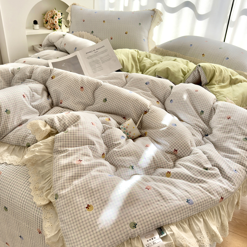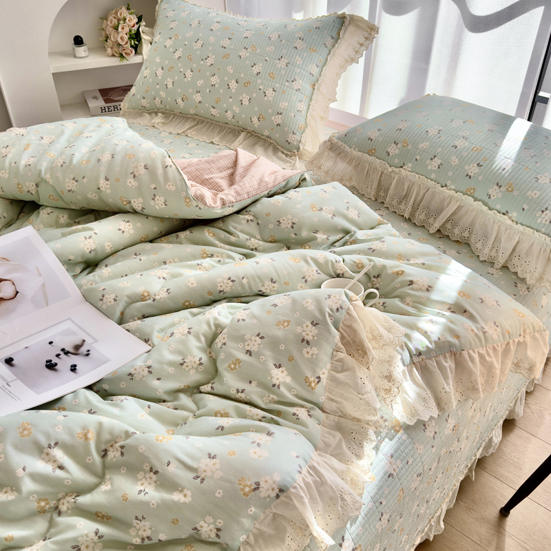 尊妙被业 2025春夏新款全棉纯棉印花法式花边春秋被可机洗 南瓜节