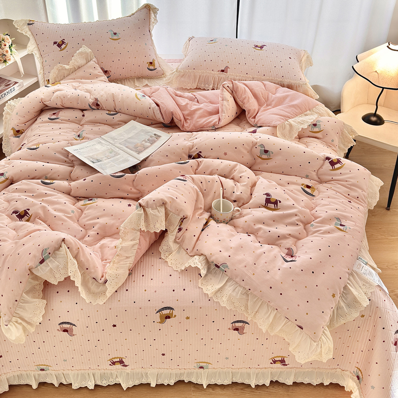• 91家纺网 家纺一手货源 找家纺 尊妙被业 2025春夏新款全棉纯棉印花法式花边春秋被可机洗 南瓜节