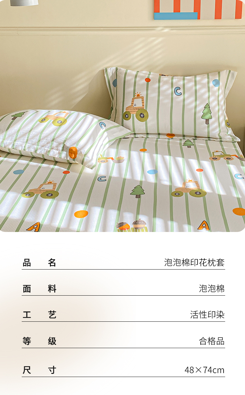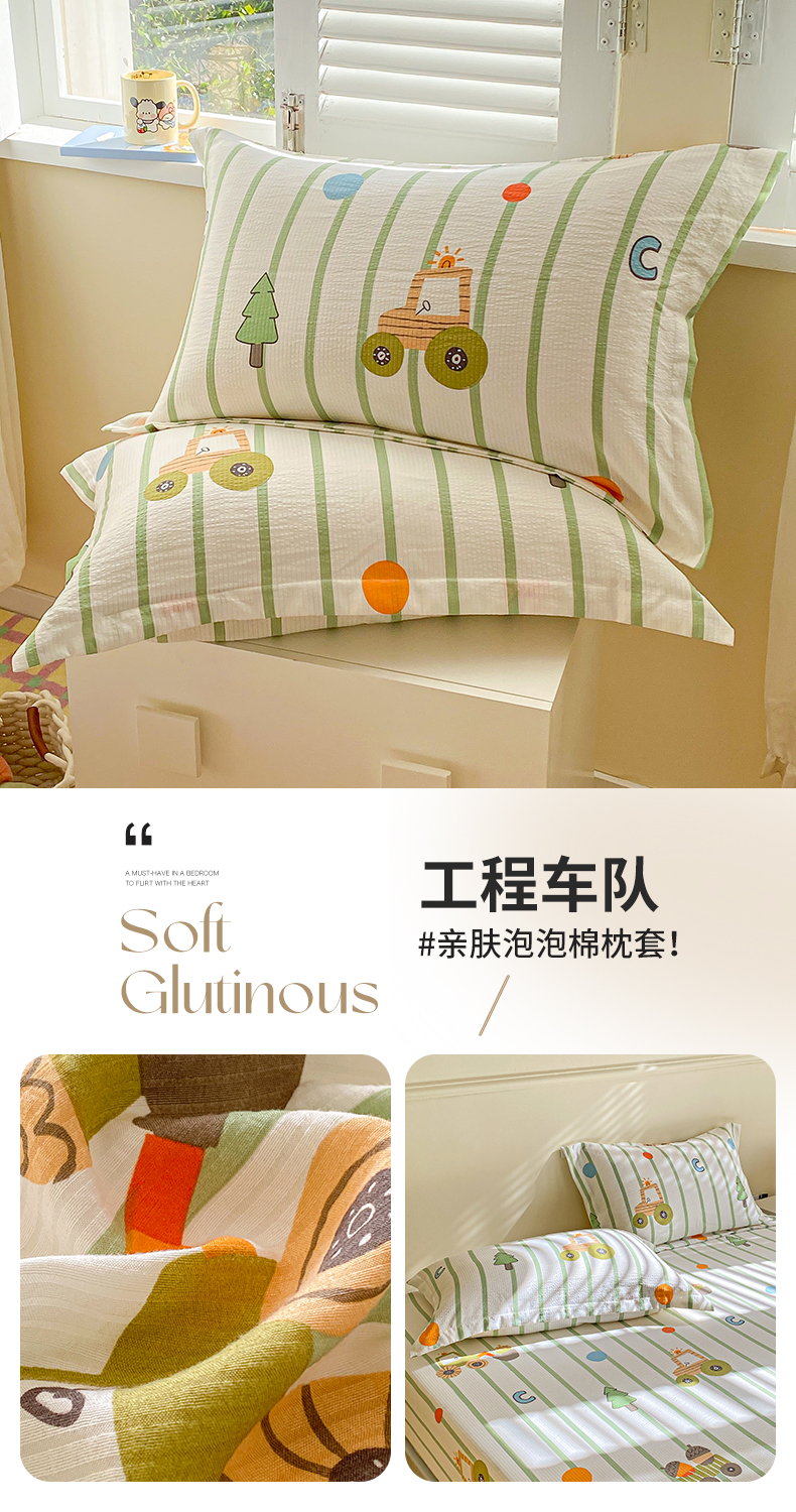 商品名称:恬澳家纺 2025新款泡泡棉印花枕套 工程车队