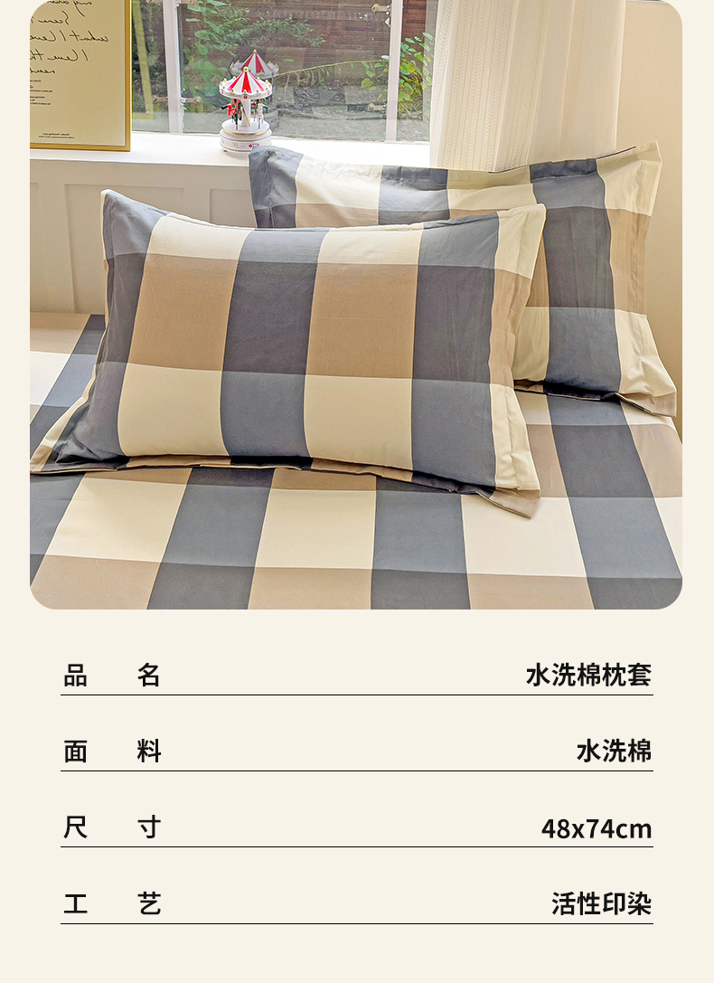 商品名称:恬澳家纺 2025新款水洗棉森系枕套 森系-英伦格