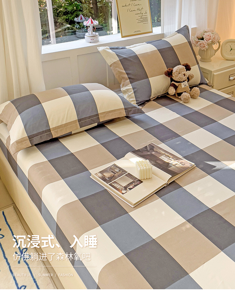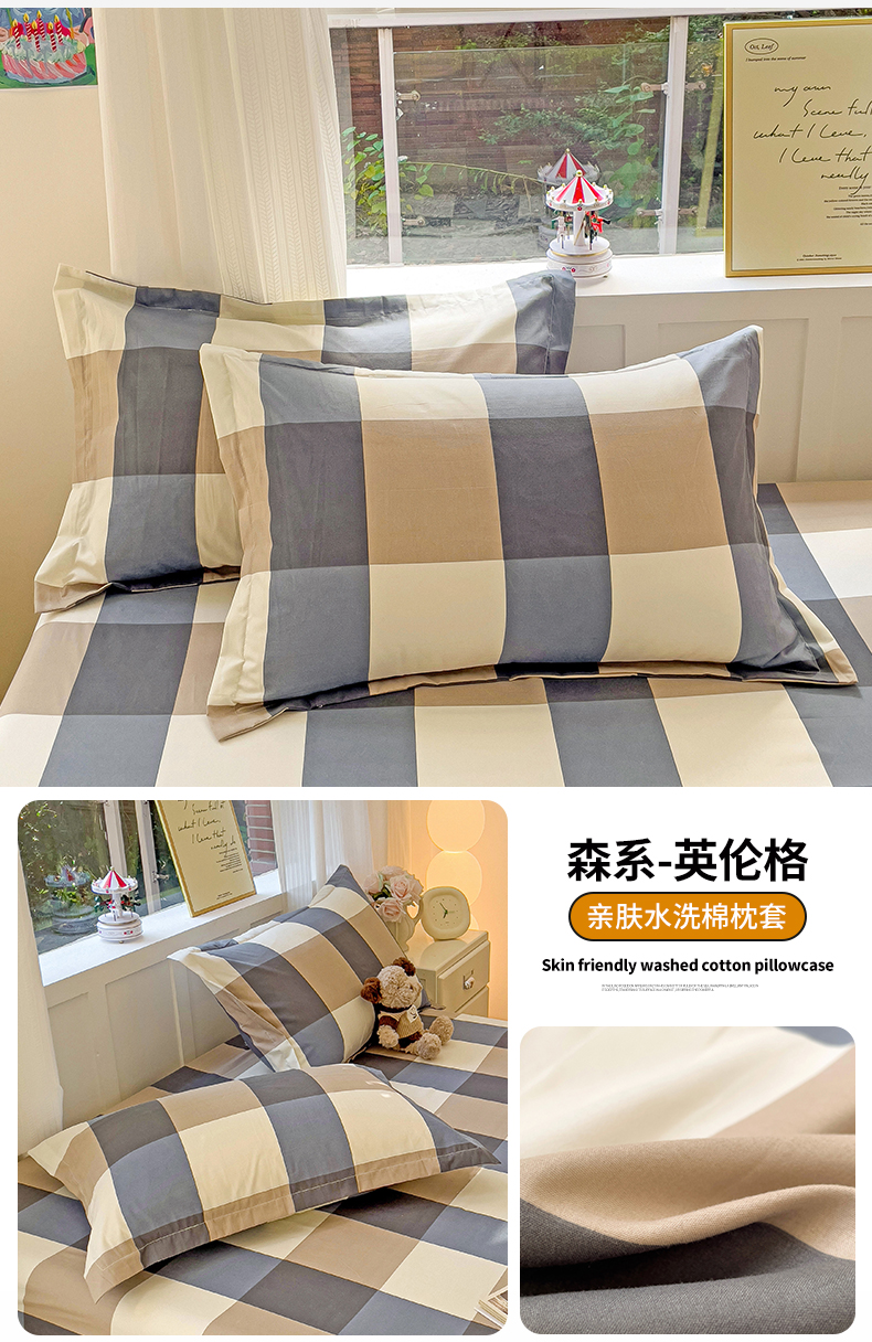 恬澳家纺 2025新款水洗棉森系枕套 森系-英伦格