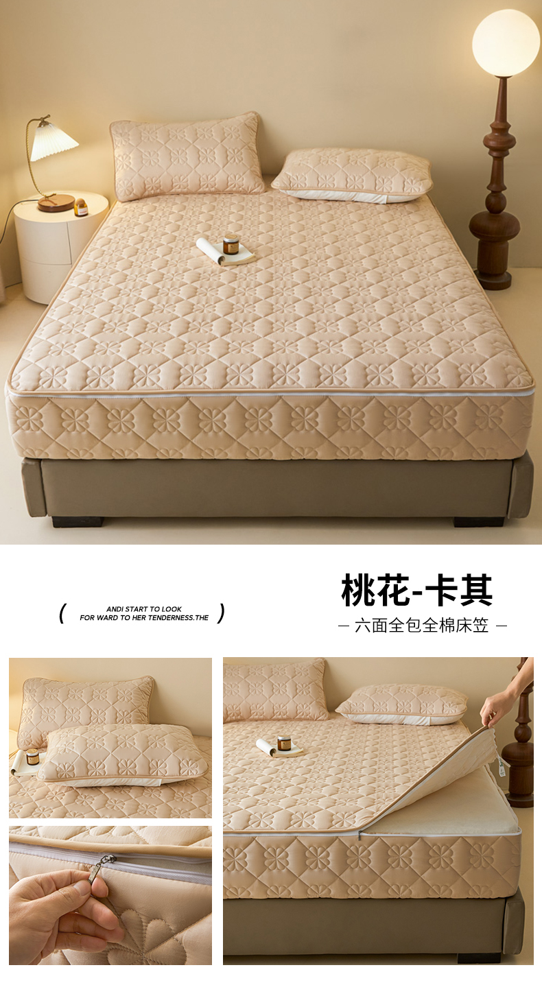 (总)鑫钰 2025新款A类纯棉夹棉床笠学生宿舍专用90x190-80x190-花漾山茶格,花漾山茶格-粉,花漾山茶格-蓝,花漾山茶格-灰
