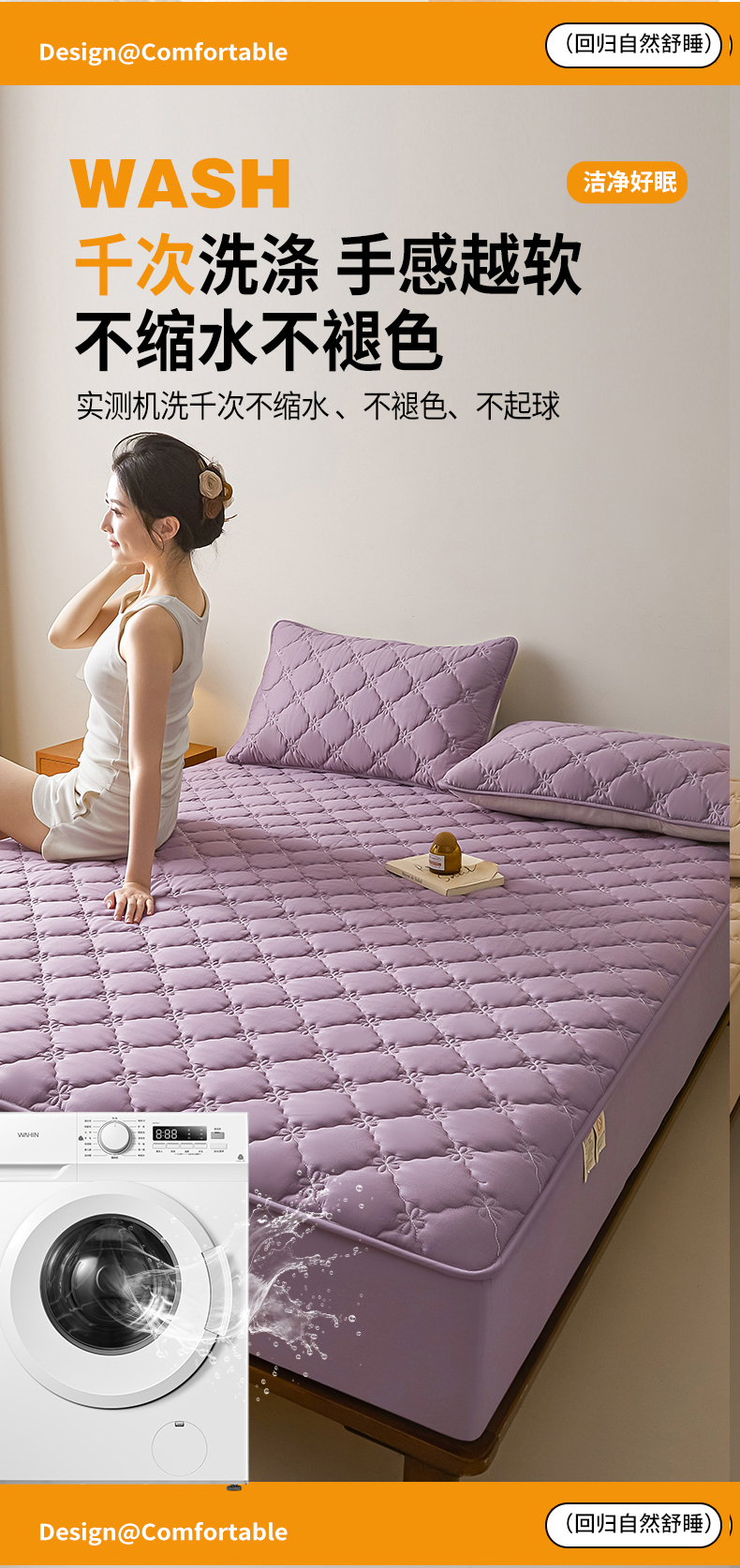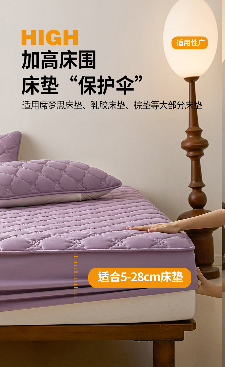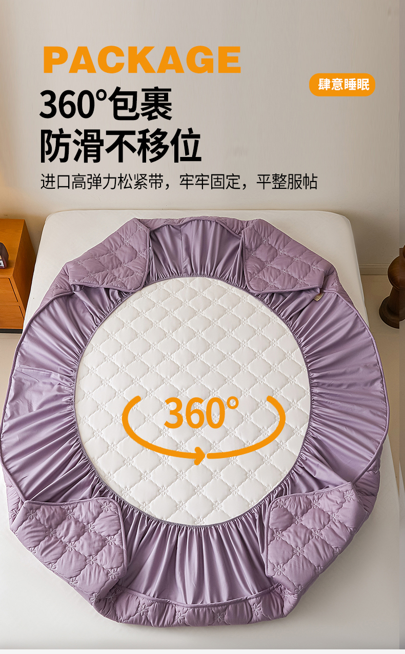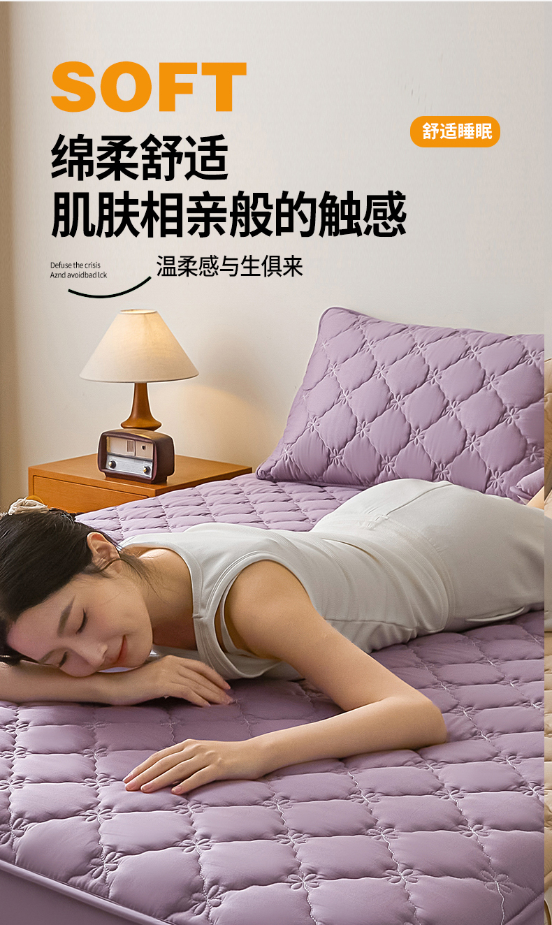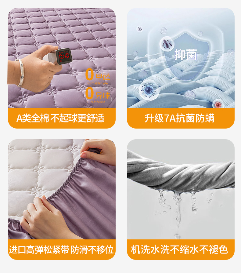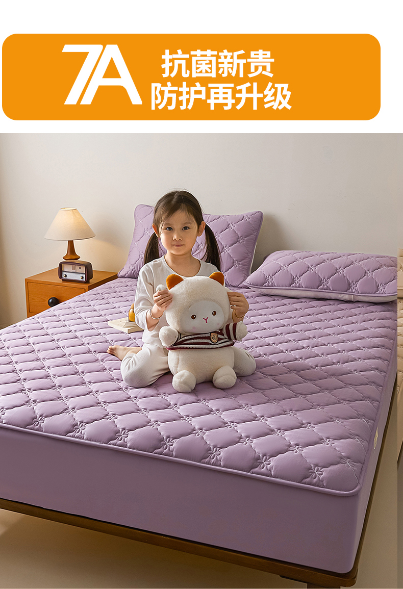 • 91家纺网 家纺一手货源 找家纺 鑫钰2025新款防水纯棉全棉夹棉床笠--四叶草黄墙 四叶草-紫