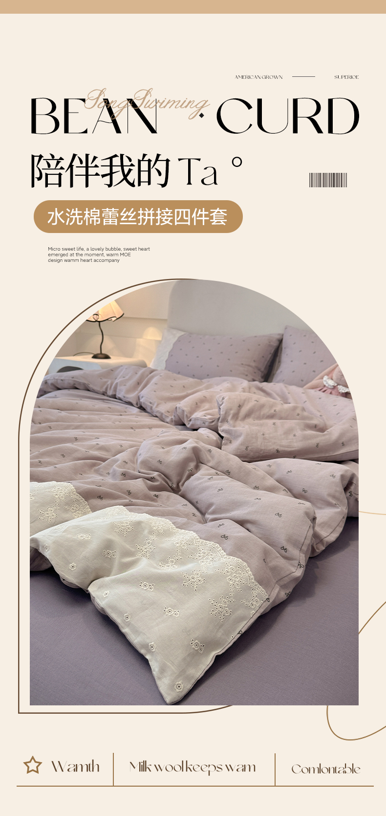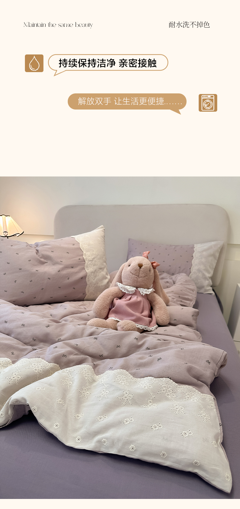 当前位置: 91家纺网 > 商品网购 > 床品套件 > 四件套 > 水洗棉四件套 > 盼季家纺 2025新款A类法式小清新皱皱纱花边水洗棉床上四件套宿舍床笠三件套 法式花边-芋泥波波
