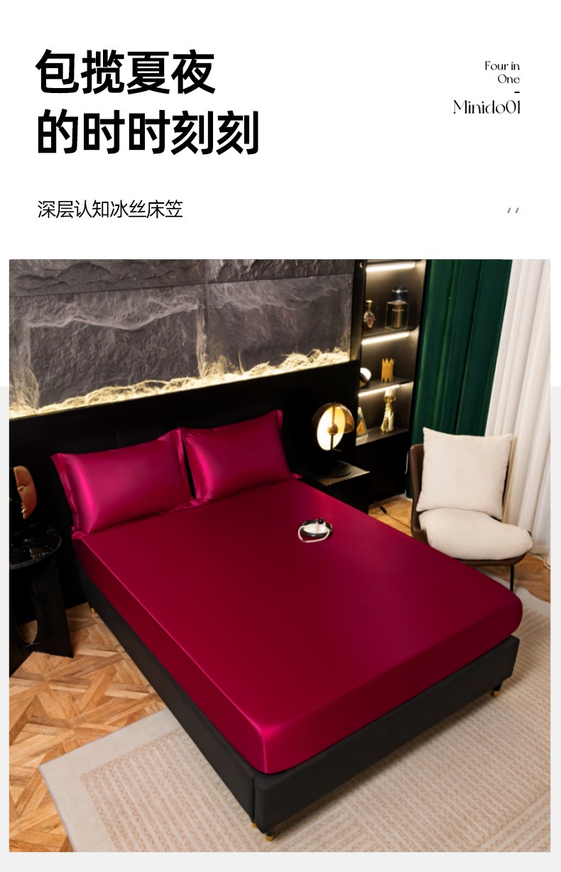 • 91家纺网 家纺一手货源 找家纺 梦舒羽2025新款防水冰丝纯色床笠凉爽柔顺床垫保护罩 防水冰丝床笠-酒红色