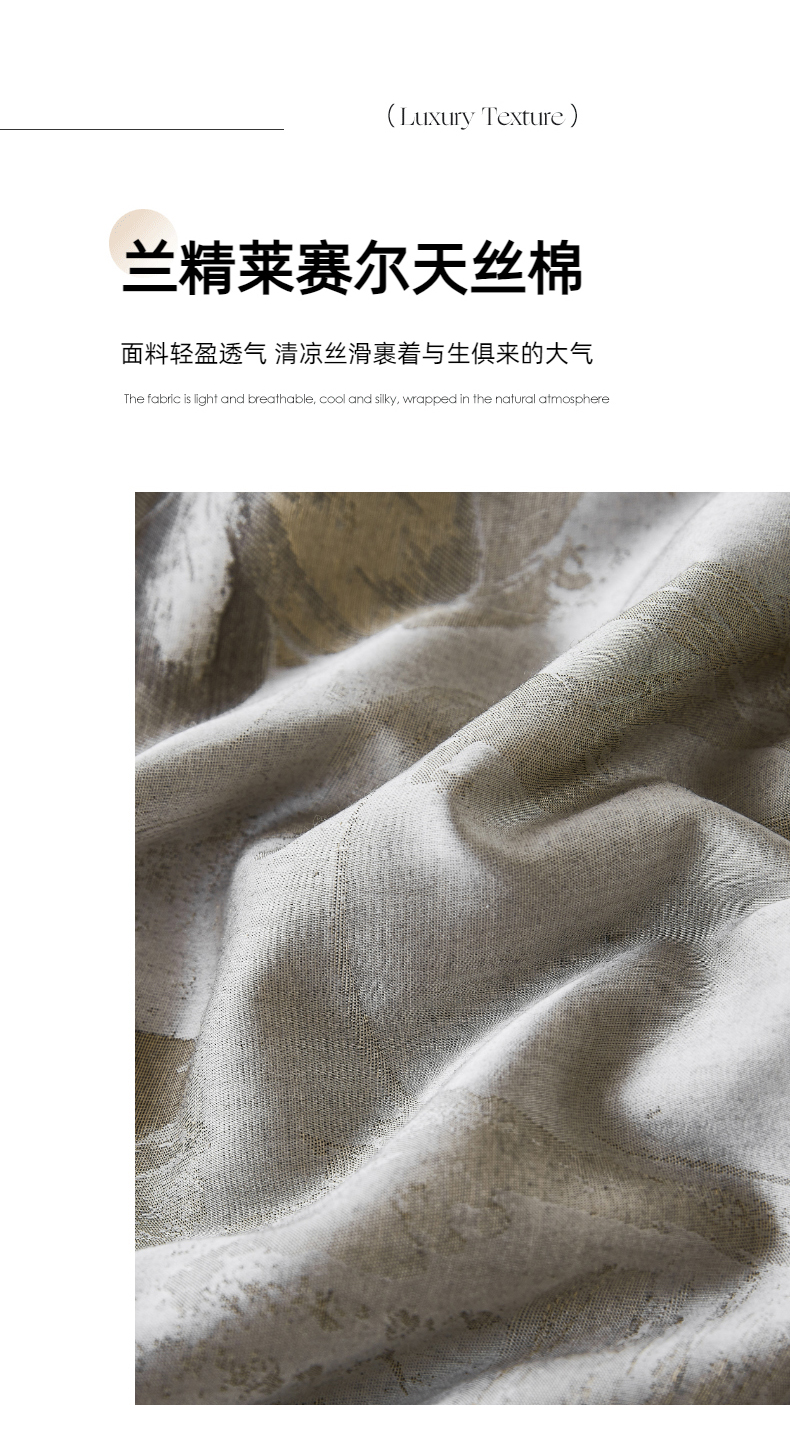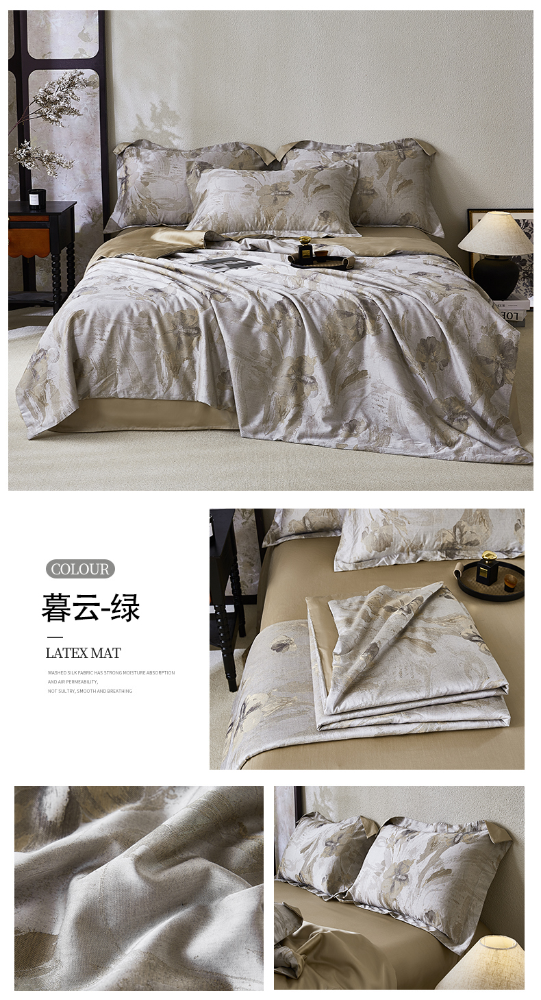 当前位置: 91家纺网 > 商品网购 > 被子 > 莱赛尔夏被 > 鸣升家纺 2025新款莱赛尔兰精天丝棉色织大提花大豆夏凉被四件套 暮云-绿