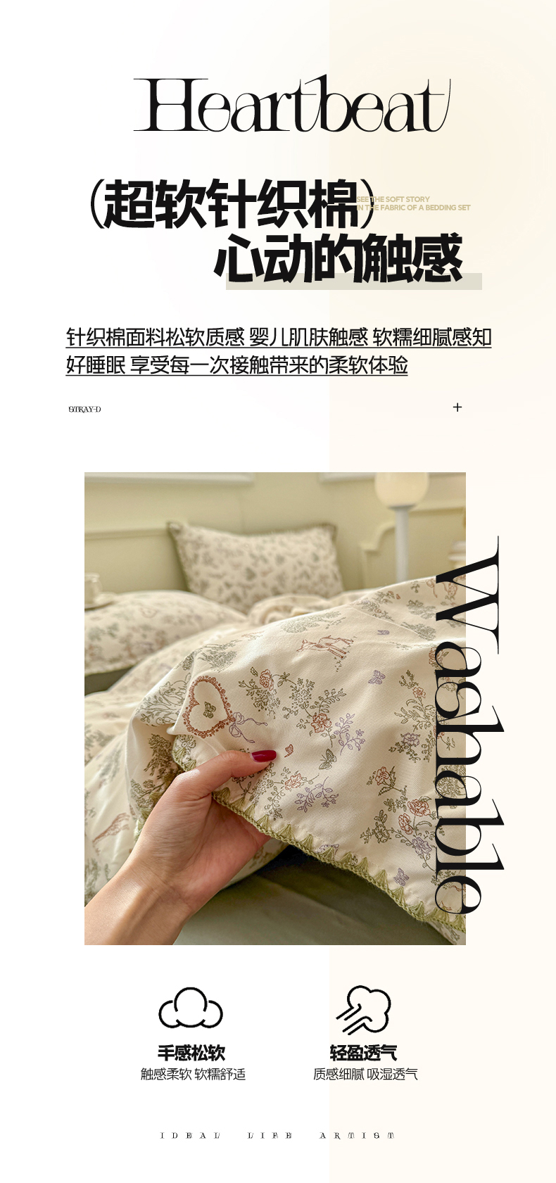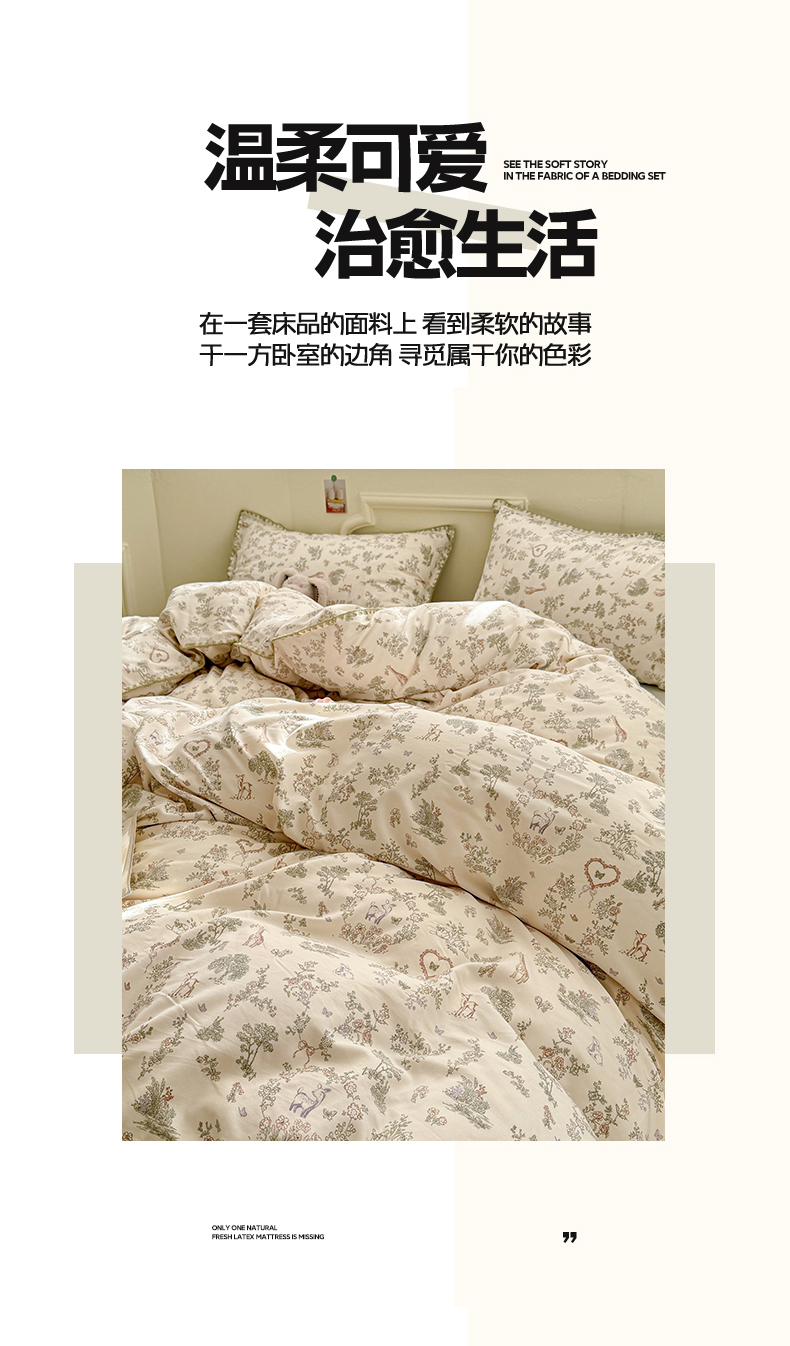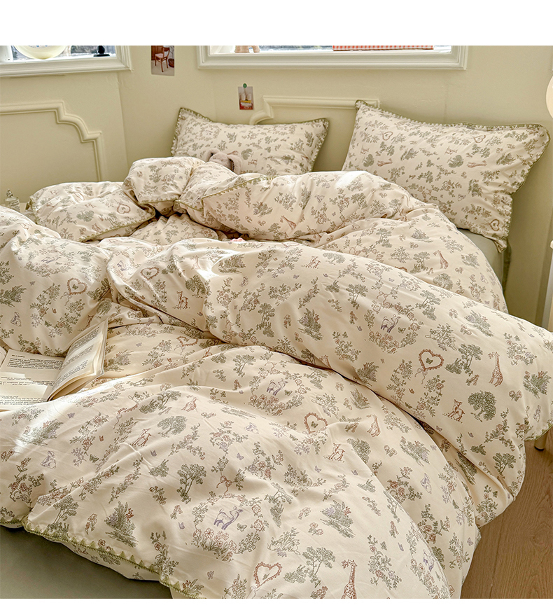 商品名称:韩都家居2025新款水洗双层纱针织棉三角针四件套(包含买家秀) 森林故事