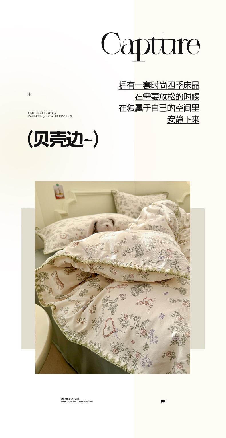 (总)韩都家居 2025新款法式花边印花牛奶绒四件套,茶花,豹纹咖,画蝶,加州风情,洛莉,陌离,南瓜,岁月留声,忘忧,艺境