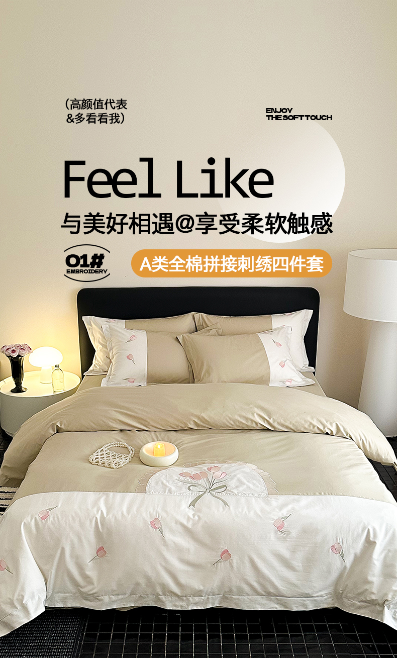 (总)典曼家纺 2025新款亲肤舒适牛奶绒四件套-可可小姐系列,可可小姐-瓷白,可可小姐-水粉