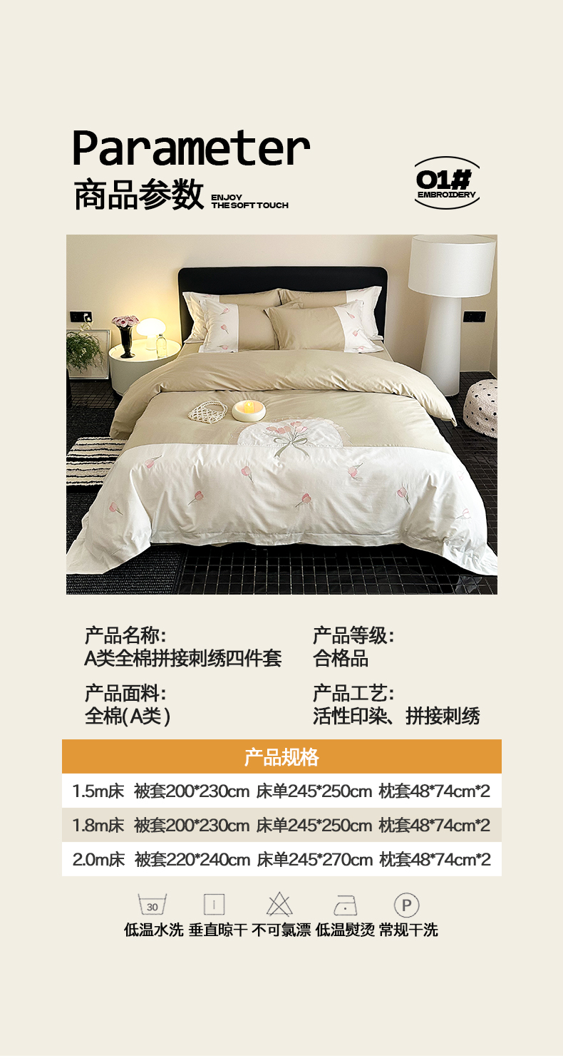 典曼家纺 2025新款A类拼接刺绣四件套-帕兰朵 帕兰朵-绿