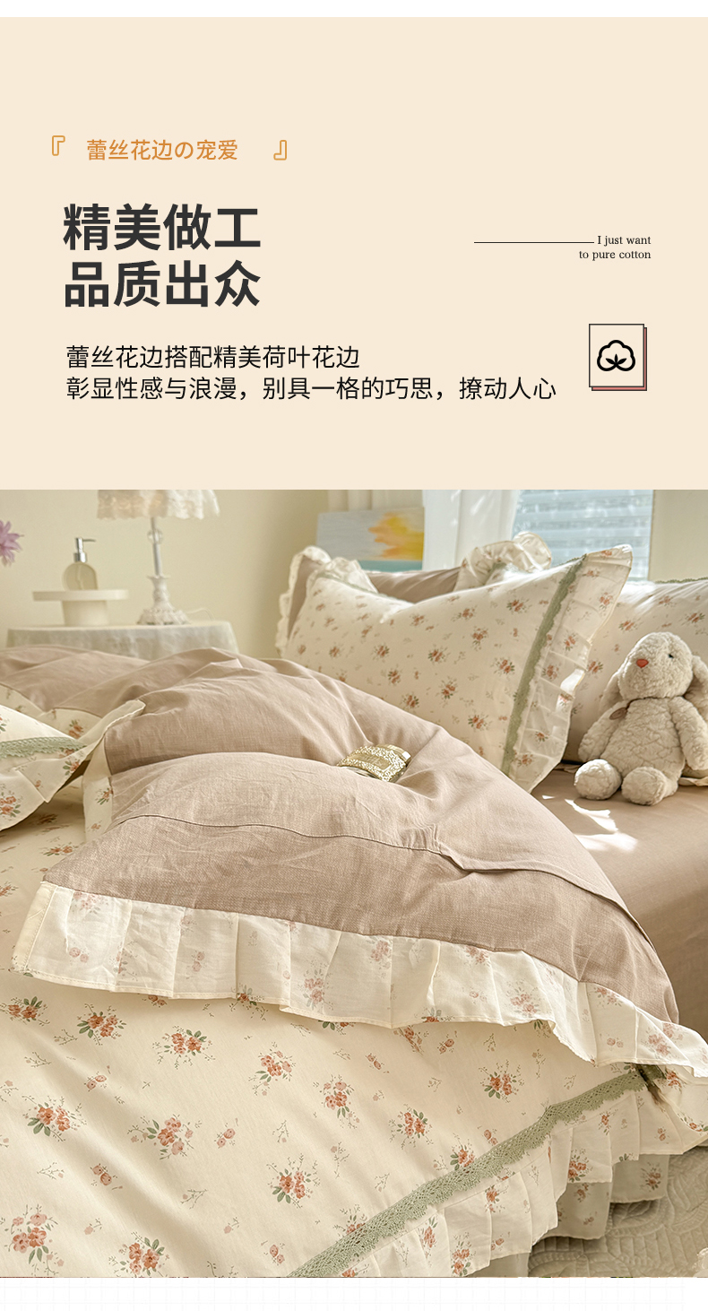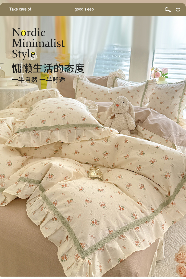 (总)艾唯希家纺 2025新款全棉法式花边纯棉四件套公主风田园系列第六批