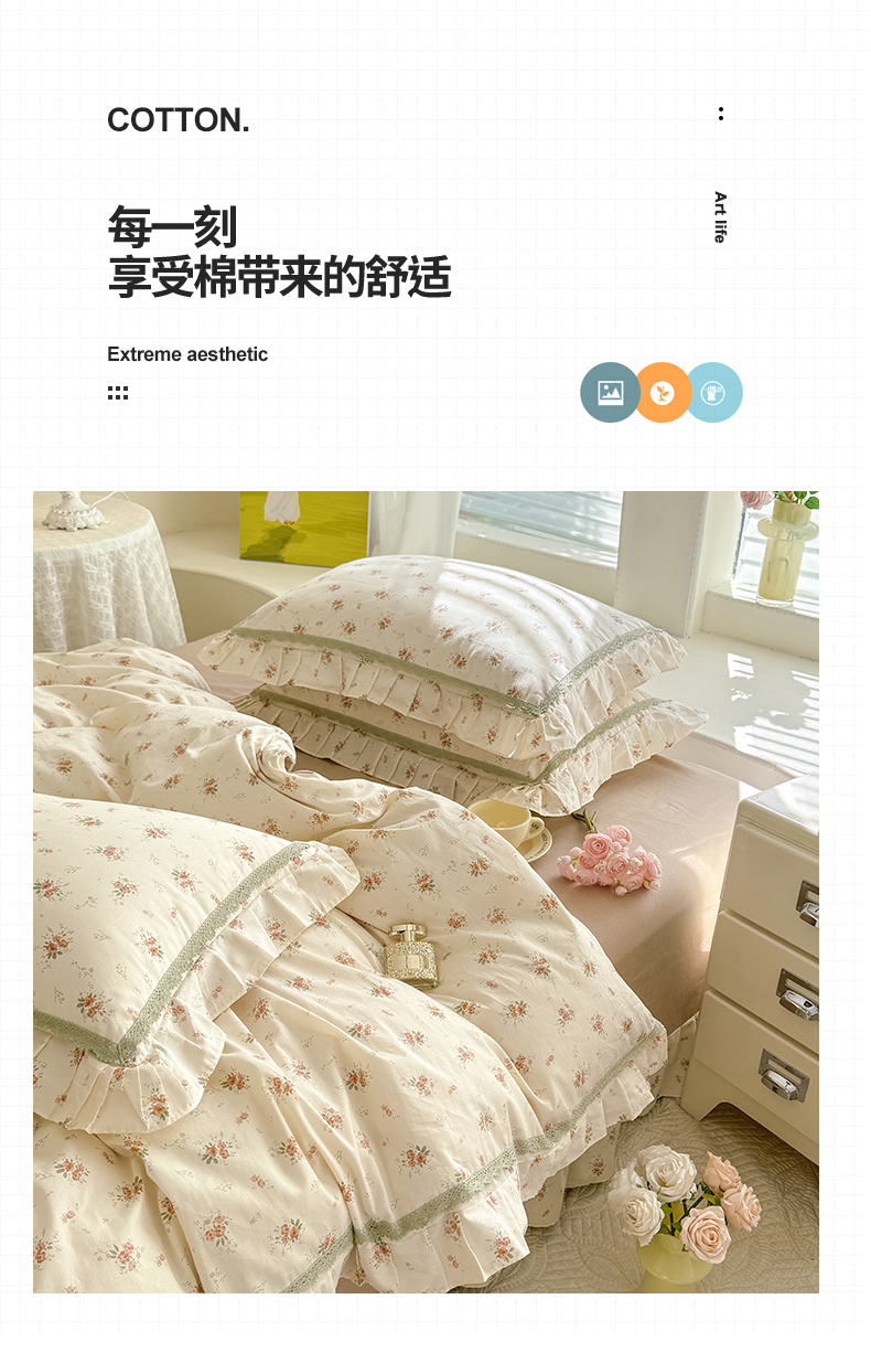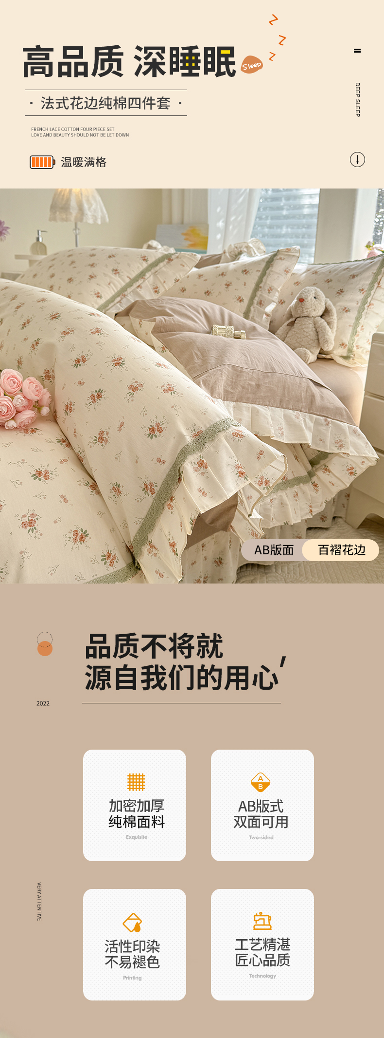 商品名称:(总)艾唯希家纺 2025新款全棉法式花边纯棉四件套公主风田园系列第六批