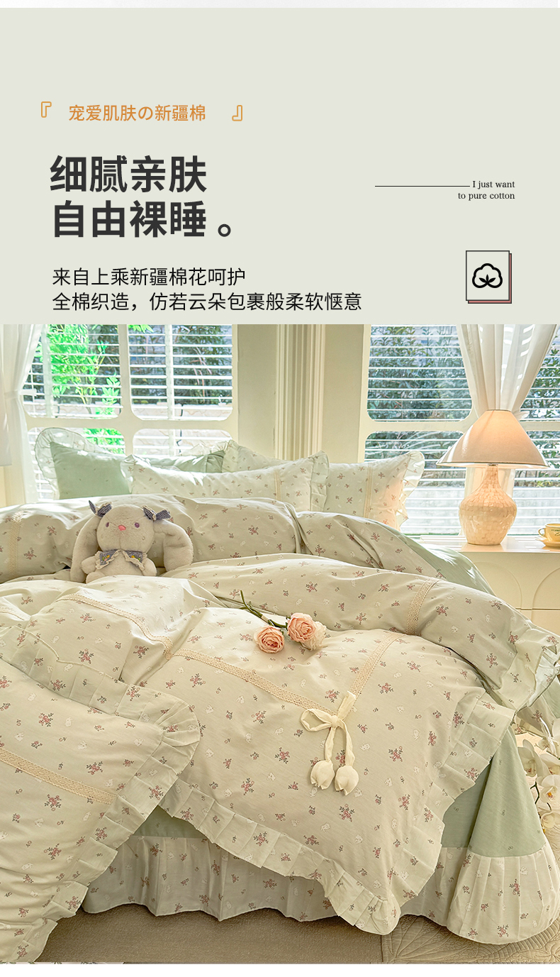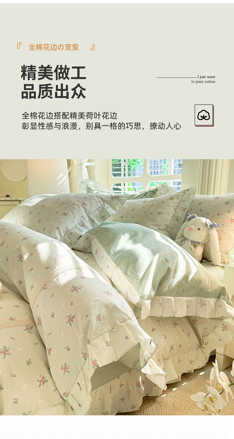 (总)艾唯希家纺 2025新款全棉双层花边四件套纯棉小碎花10个花型-花边系列,春意萌,恋之晴空,奶芙蓉-绿,奶芙蓉-粉,林间物语-绿,林间物语-紫,花冉,花艺漫漫,梳璃,雾里花
