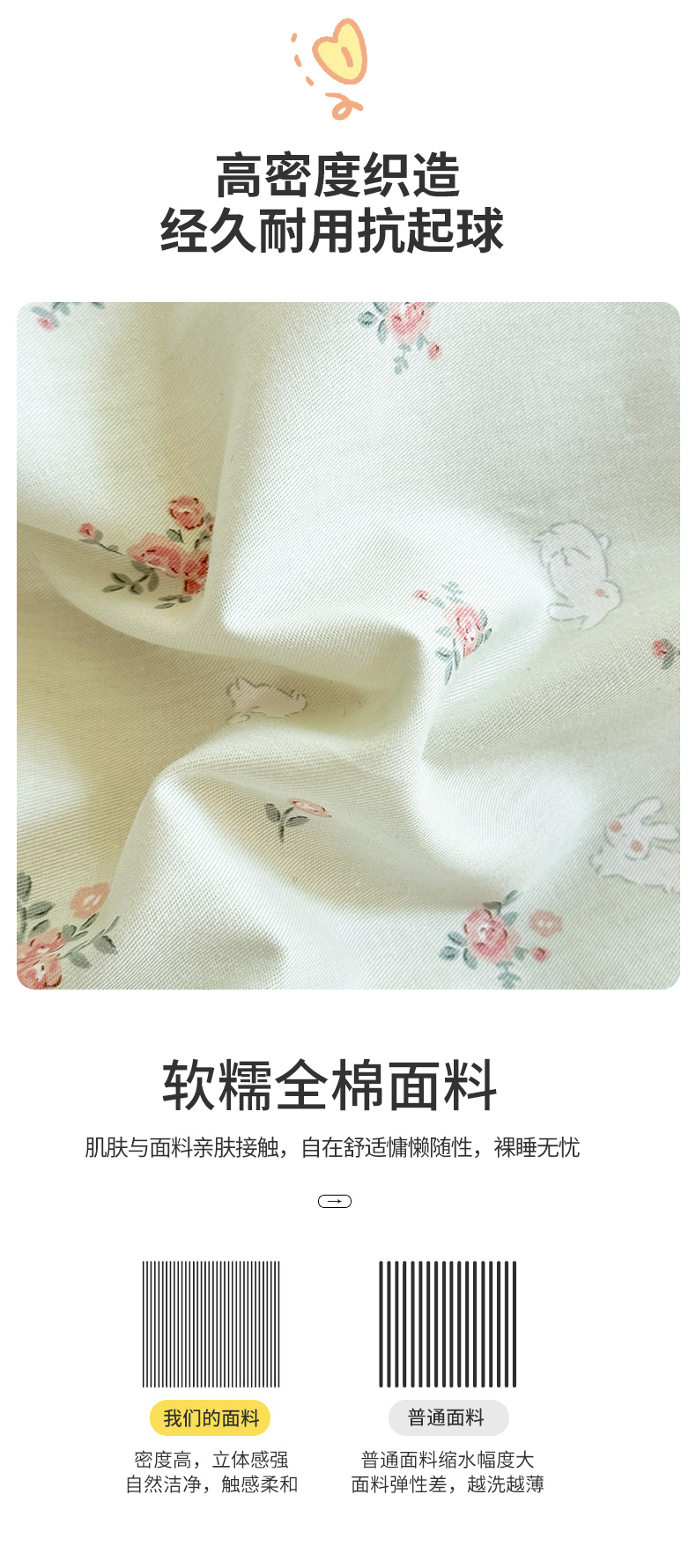 (总)艾唯希家纺 2025新款全棉纯棉色织小提花工艺四件套-开心兔系列,开心兔-粉,开心兔-灰