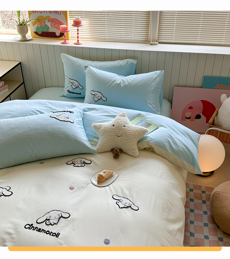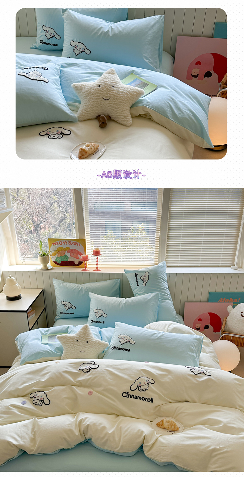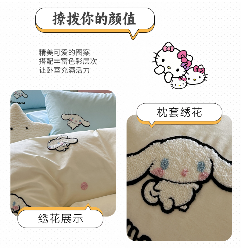 (总)金爱家 2025新款A类三丽鸥正版授权云柔水洗棉兔毛贴布绣刺绣软糯系列四件套,云柔水洗棉-贴布绣粉格KT,云柔水洗棉-贴布绣蓝格布丁狗,云柔水洗棉-贴布绣蓝格KT,云柔水洗棉-贴布绣美乐蒂,云柔水洗棉-贴布绣萌萌布丁狗,云柔水洗棉-贴布绣你好大耳狗,云柔水洗棉-贴布绣紫格库洛米