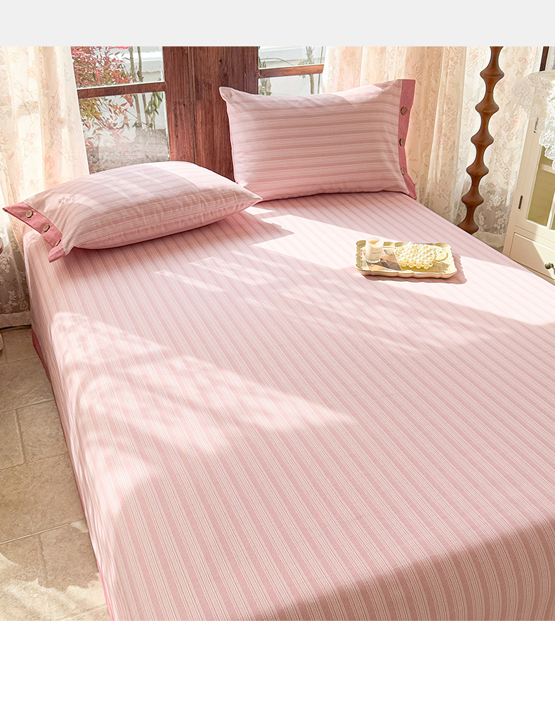 简宜家居 2025新款宽边纯棉全棉老粗布床单 疏条-粉桃宽边