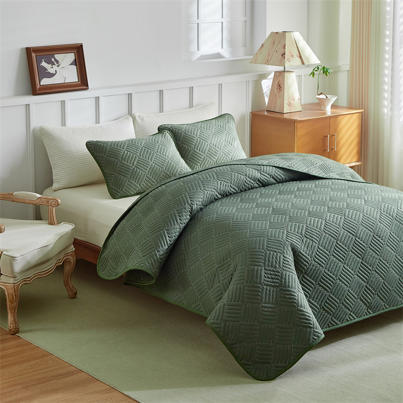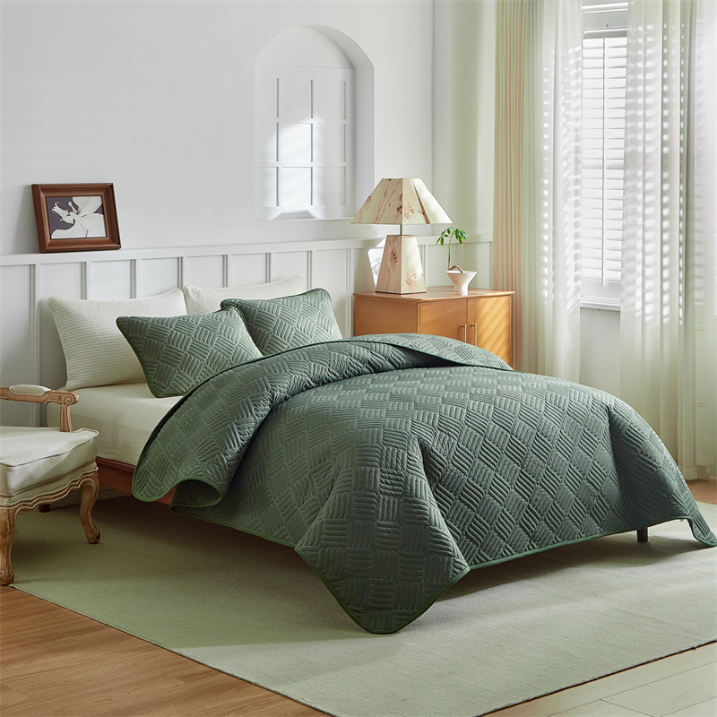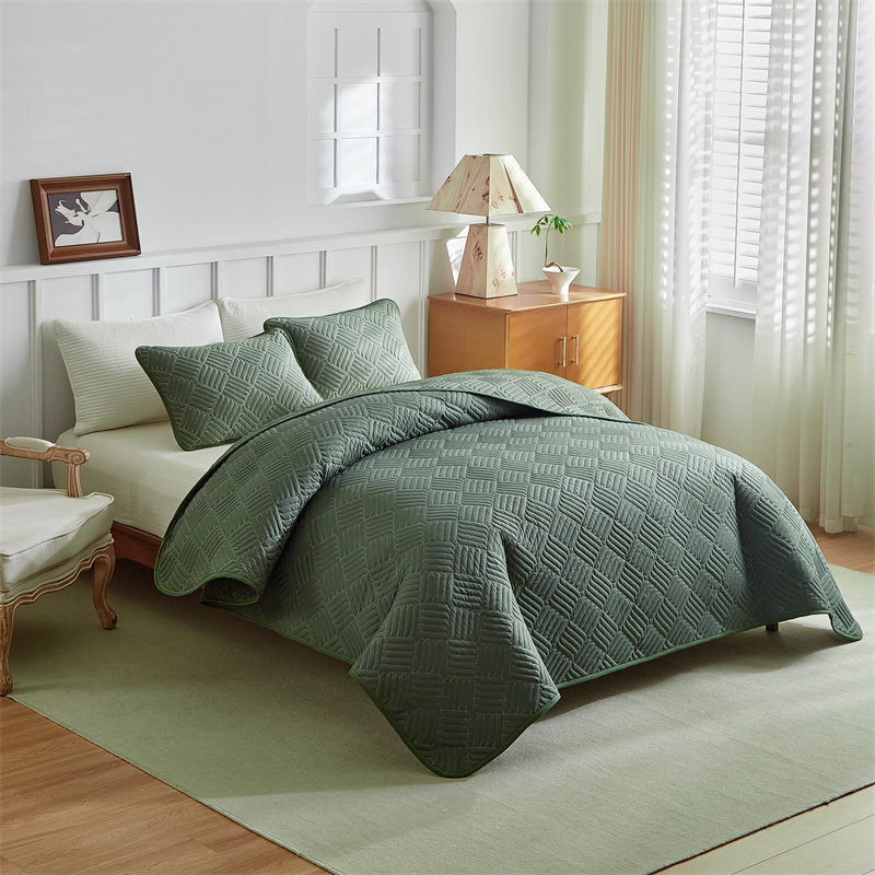 (总)温宁2025新款跨境外贸专供正方格床盖,绿色,米色,银灰