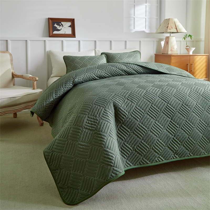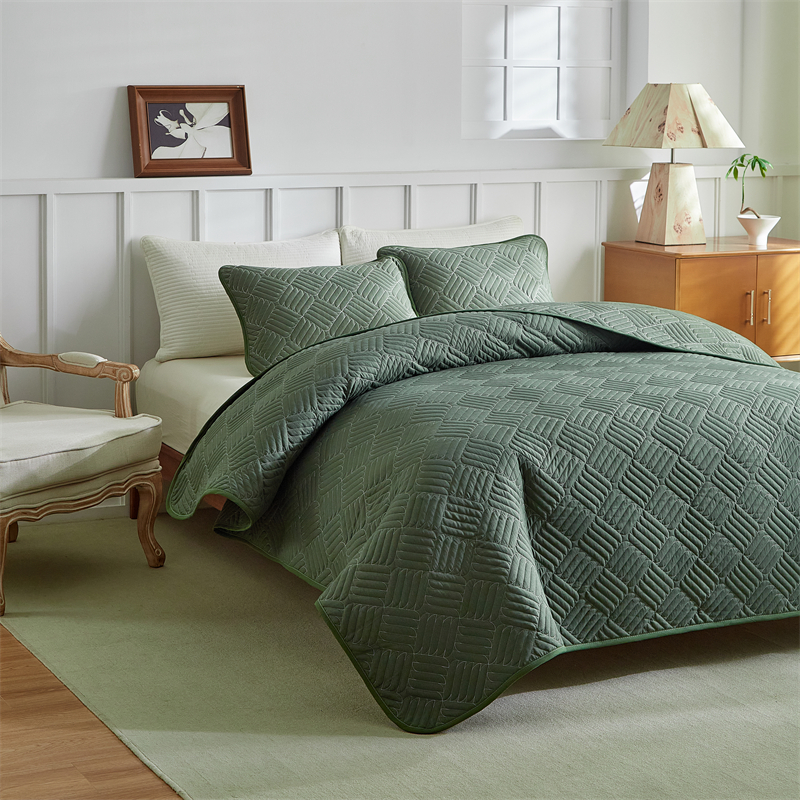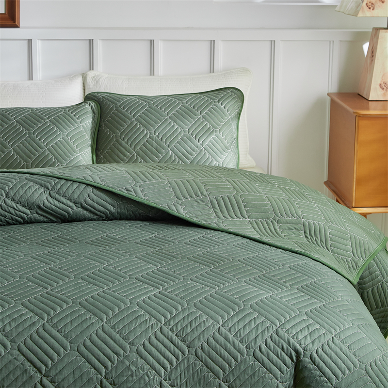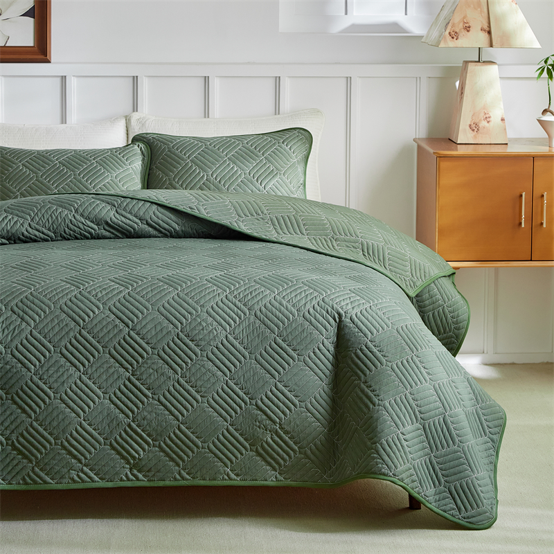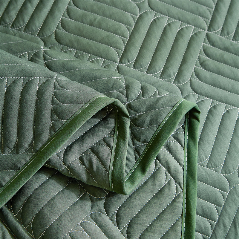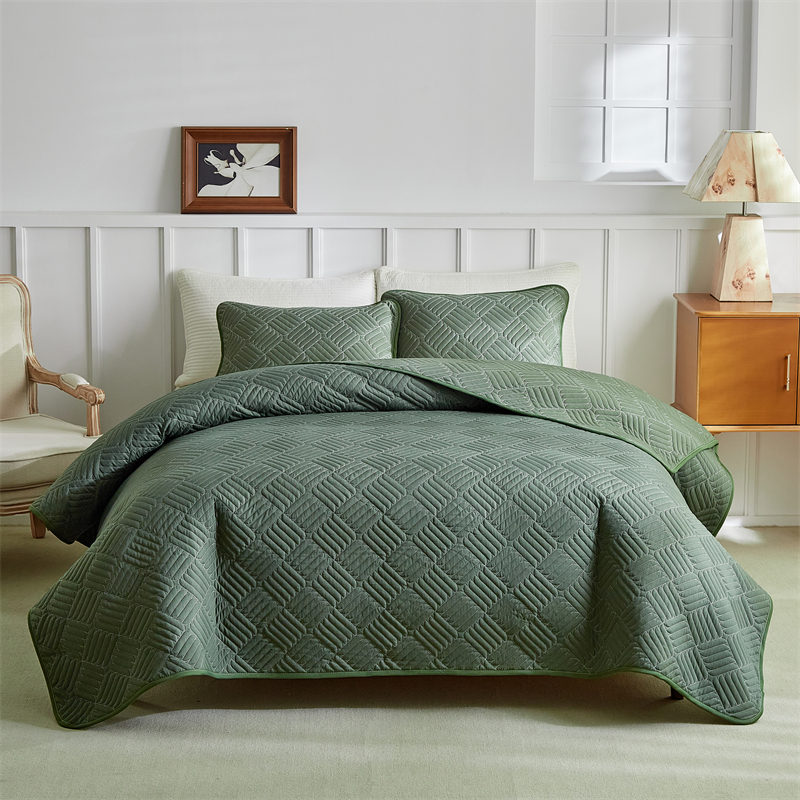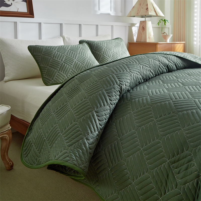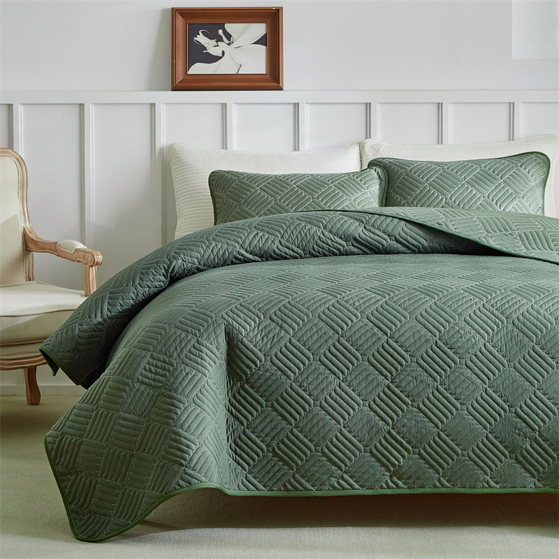 (总)温宁2025新款跨境外贸专供斜方格床盖,绿色,米色,银灰