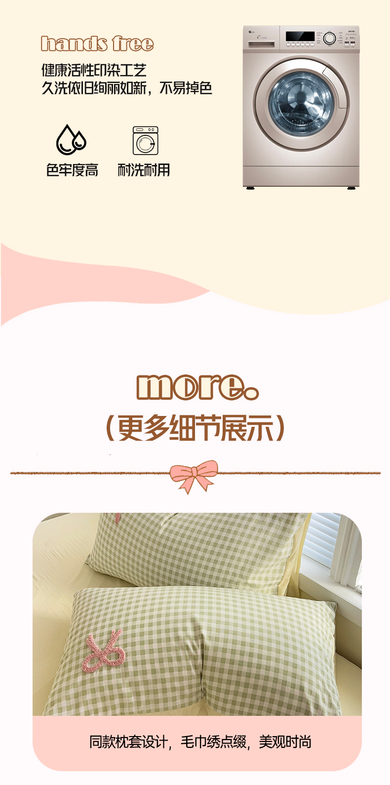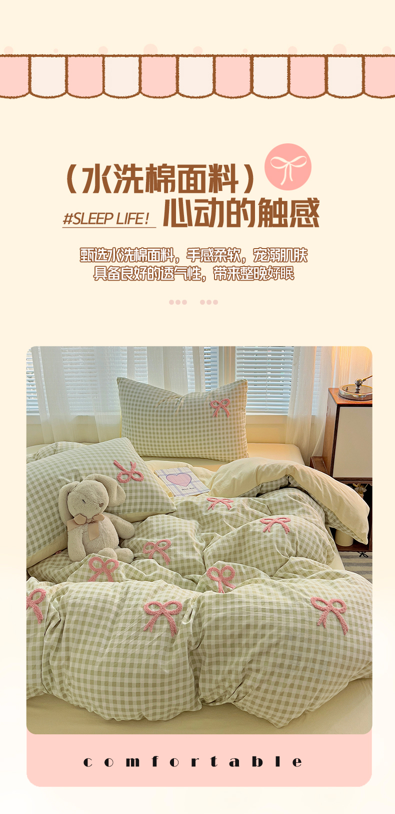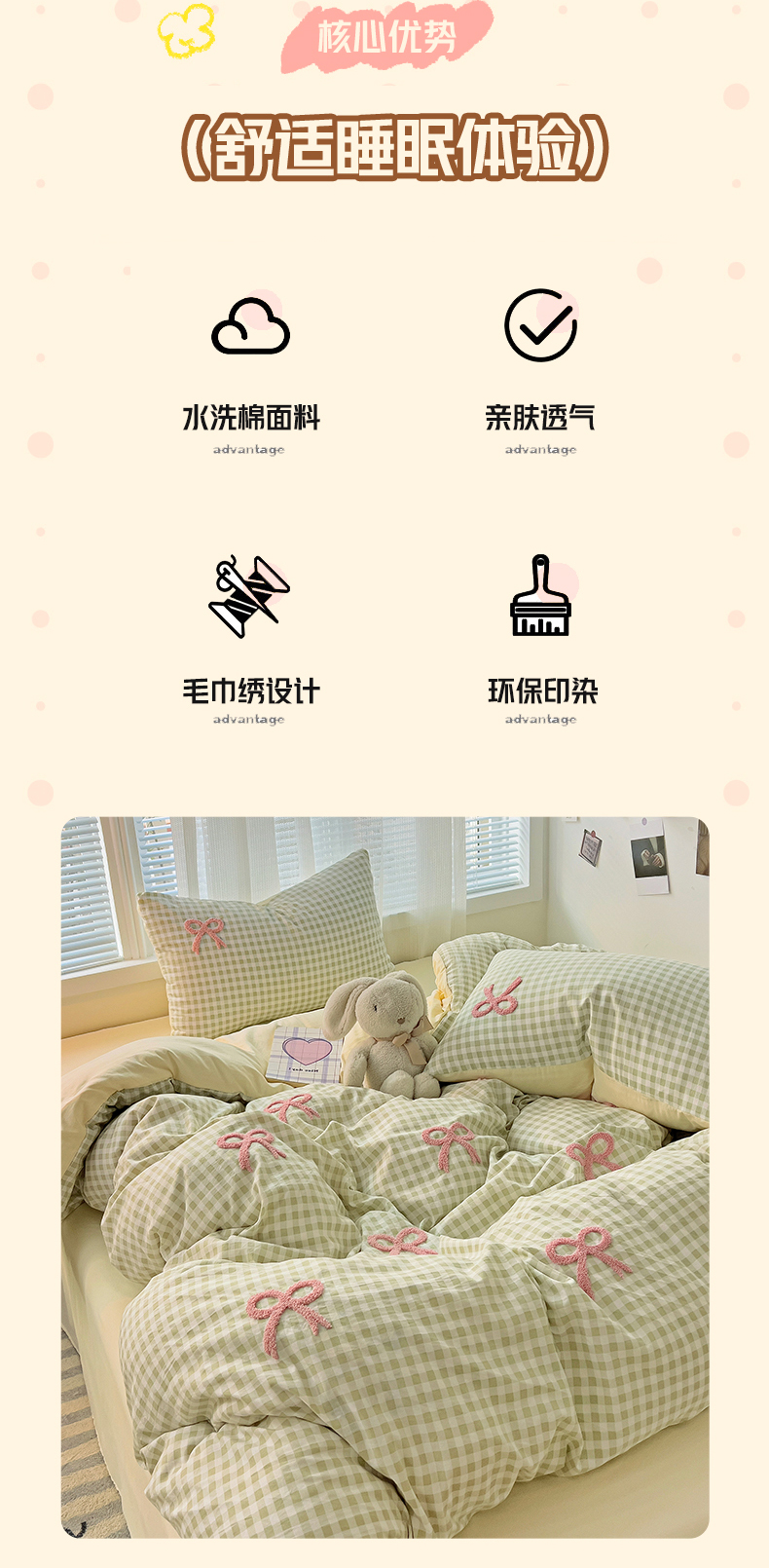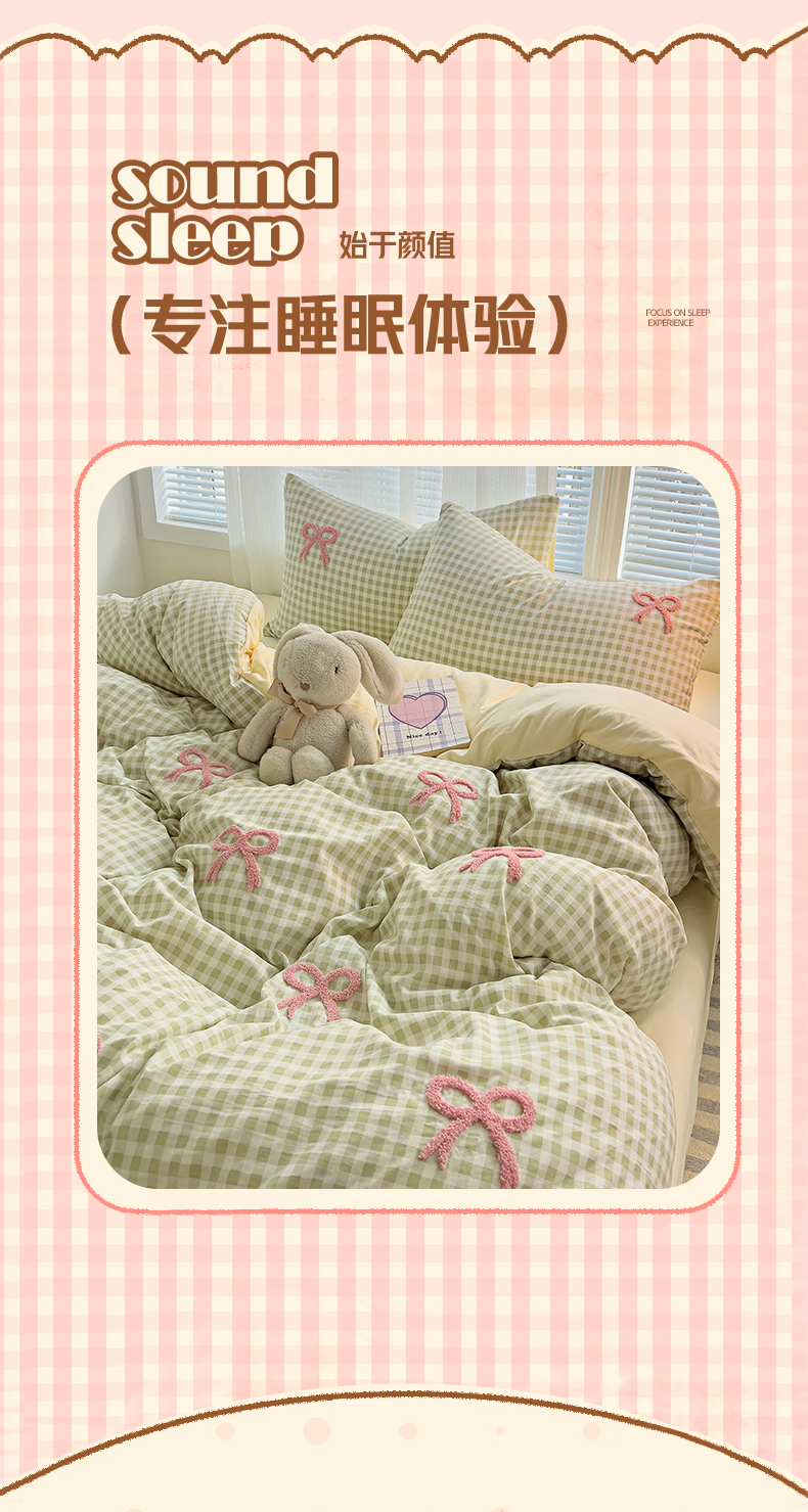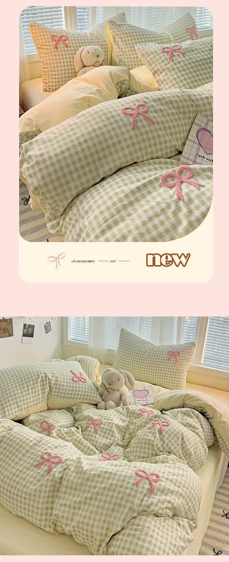 当前位置: 91家纺网 > 商品网购 > 床品套件 > 四件套 > 毛巾绣四件套 > 灰鲸2025新款ins韩系软妹风蝴蝶结毛巾绣四件套 蝴蝶结(绿格+奶油黄)