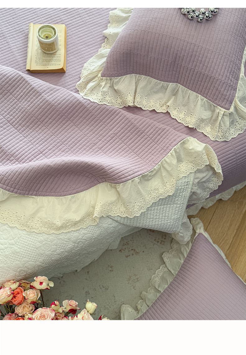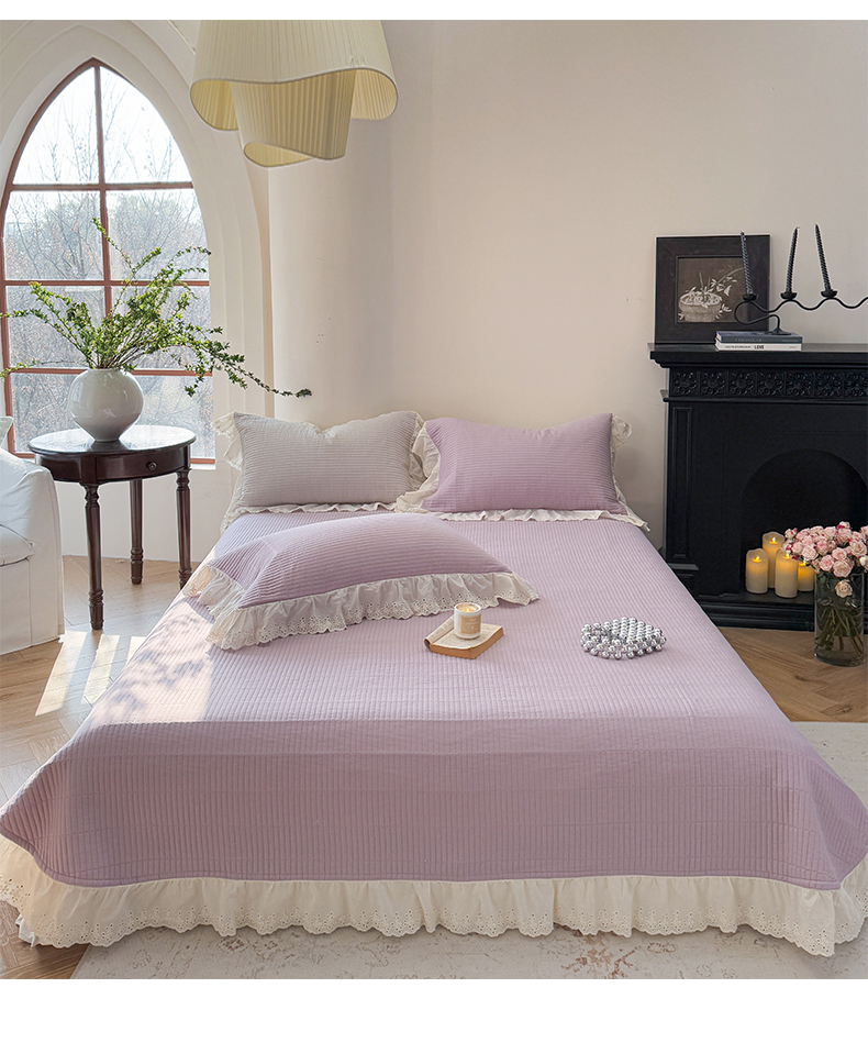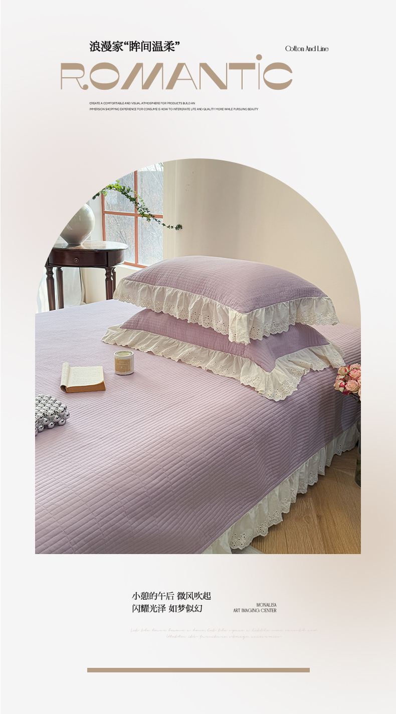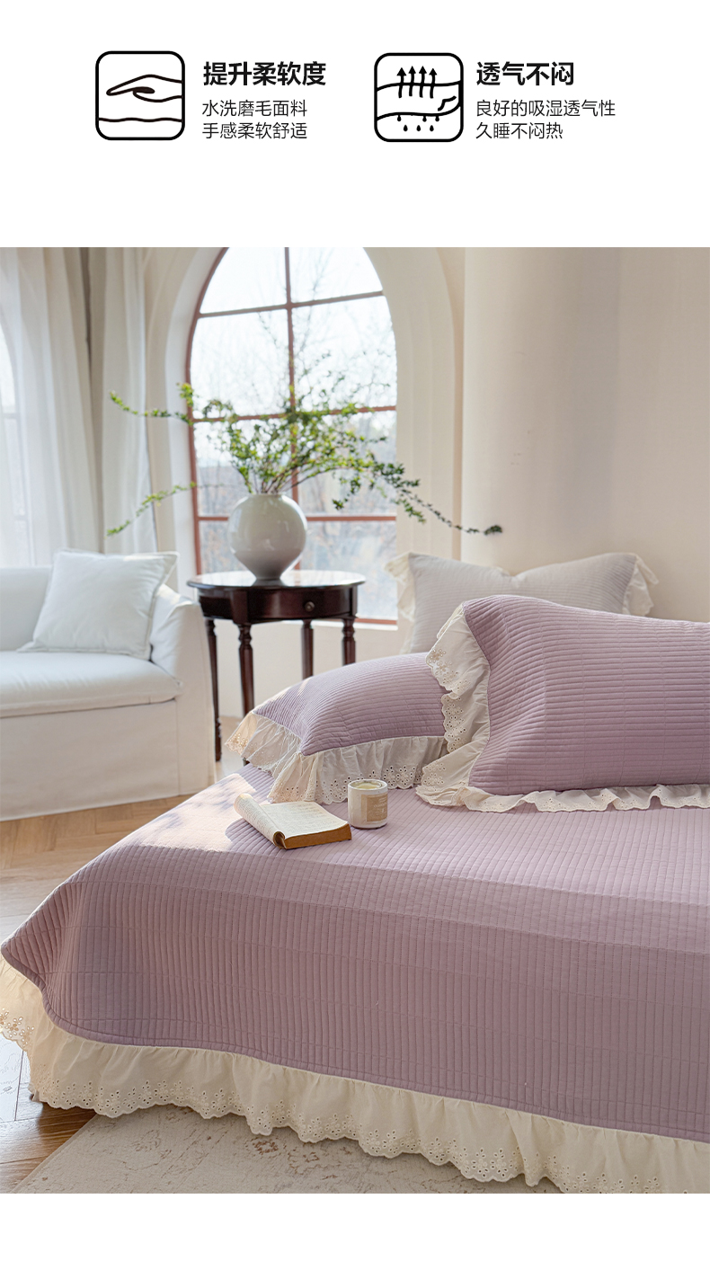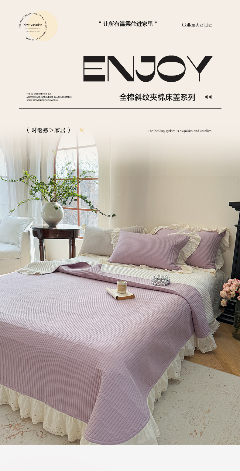 诗黛尔 2025春夏新品全棉斜纹花边夹棉床盖-雅纹系列 雅纹-紫