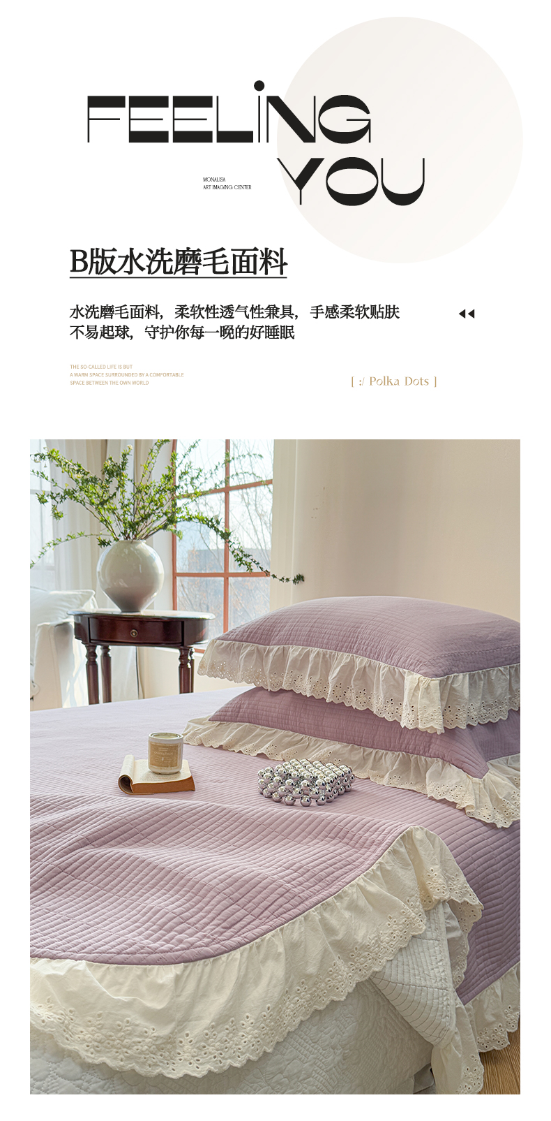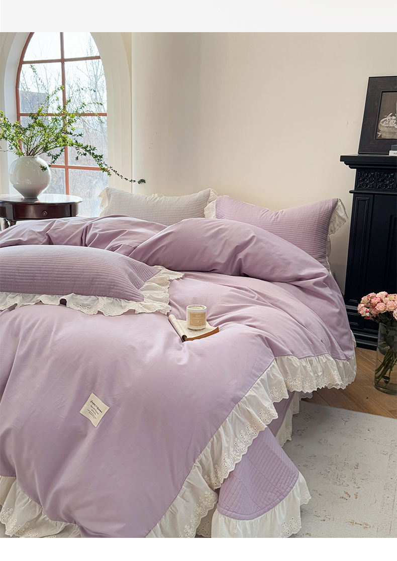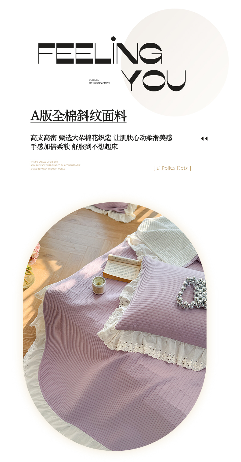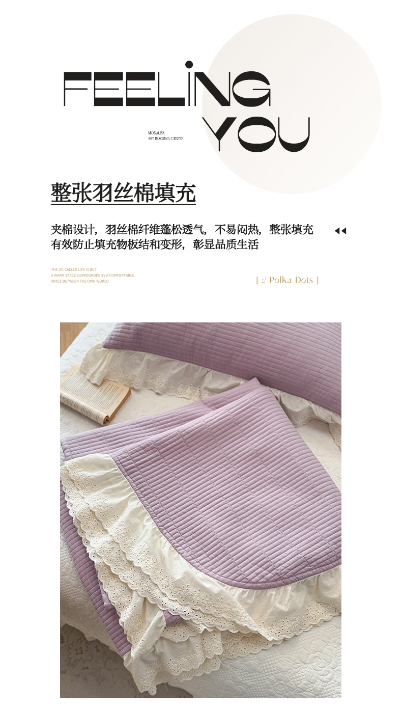 诗黛尔 2025春夏新品全棉斜纹花边夹棉床盖-雅纹系列 雅纹-紫