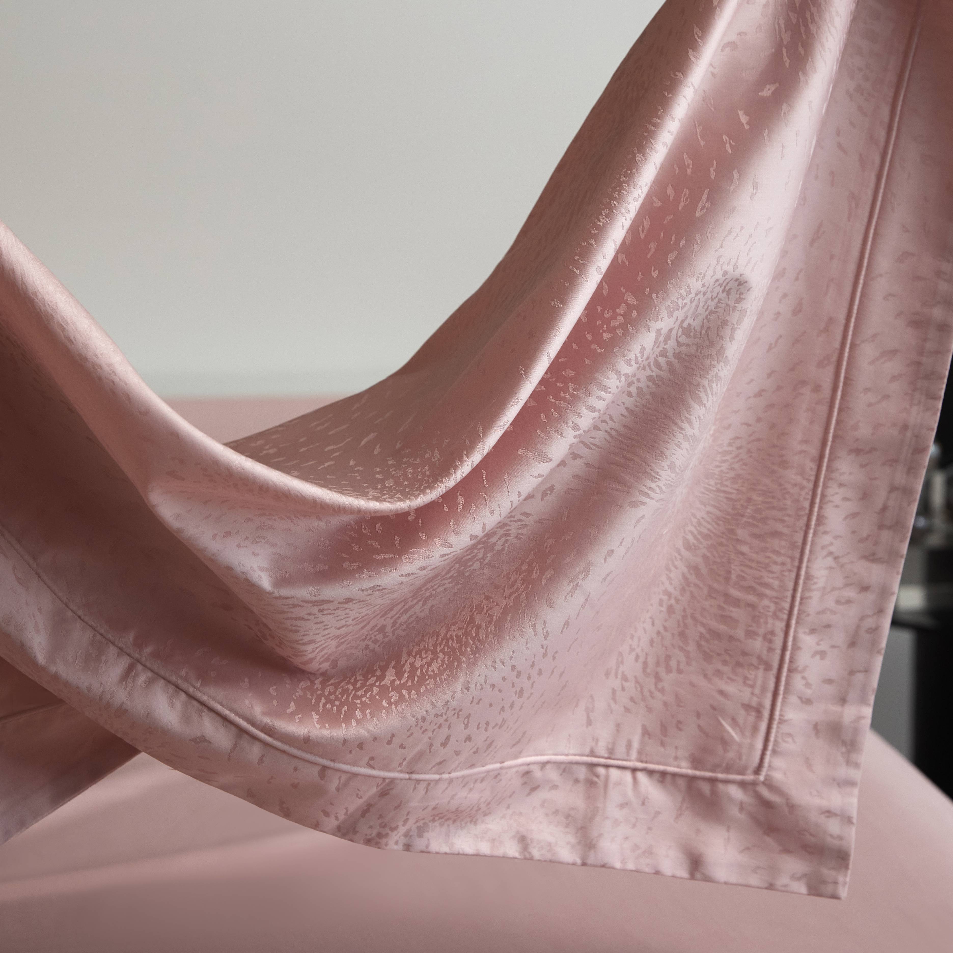 商品名称:榻尚家居 2025春夏新款长绒棉全棉纯棉贡缎提花手工立体埋绳工艺四件套 星耀(樱花粉)