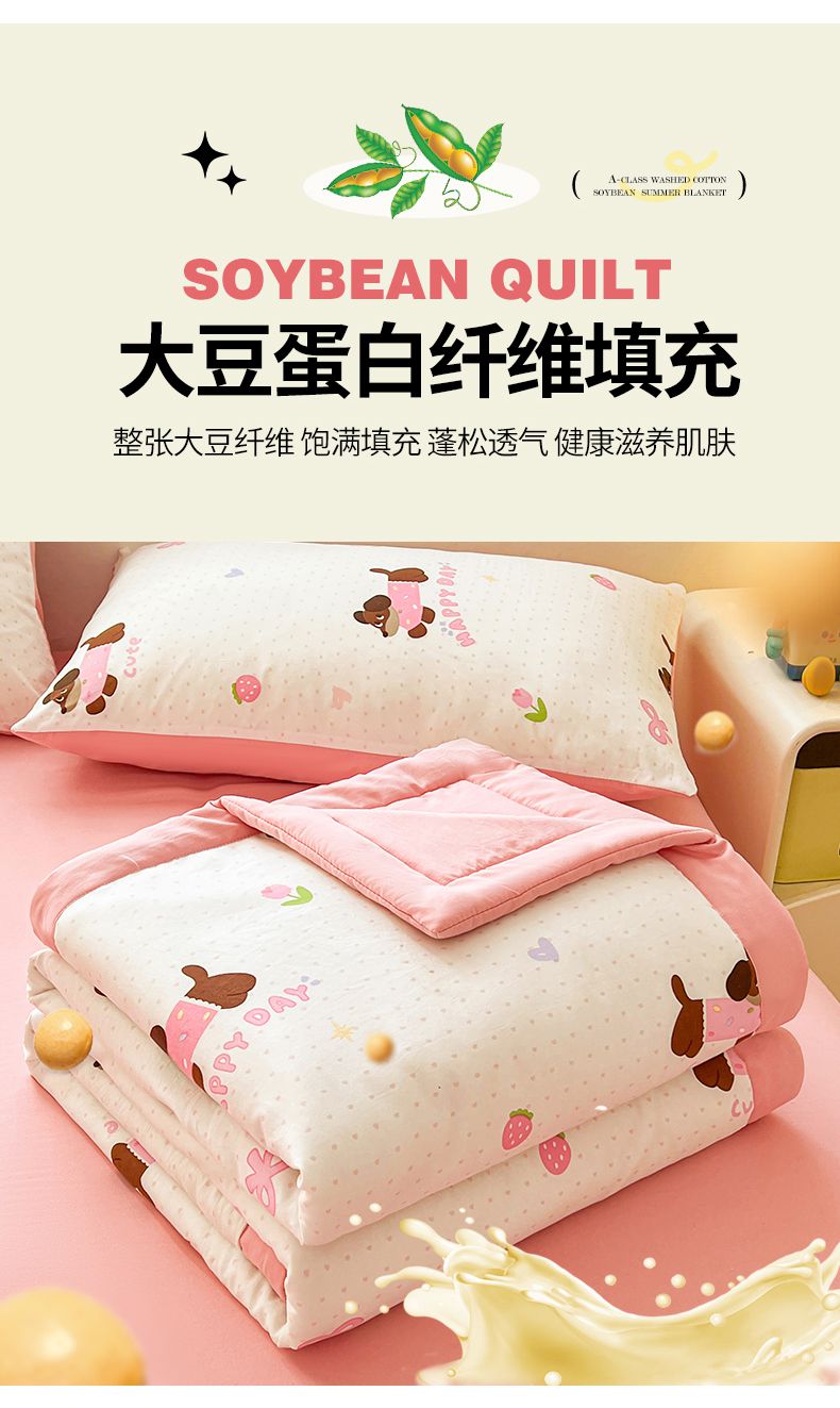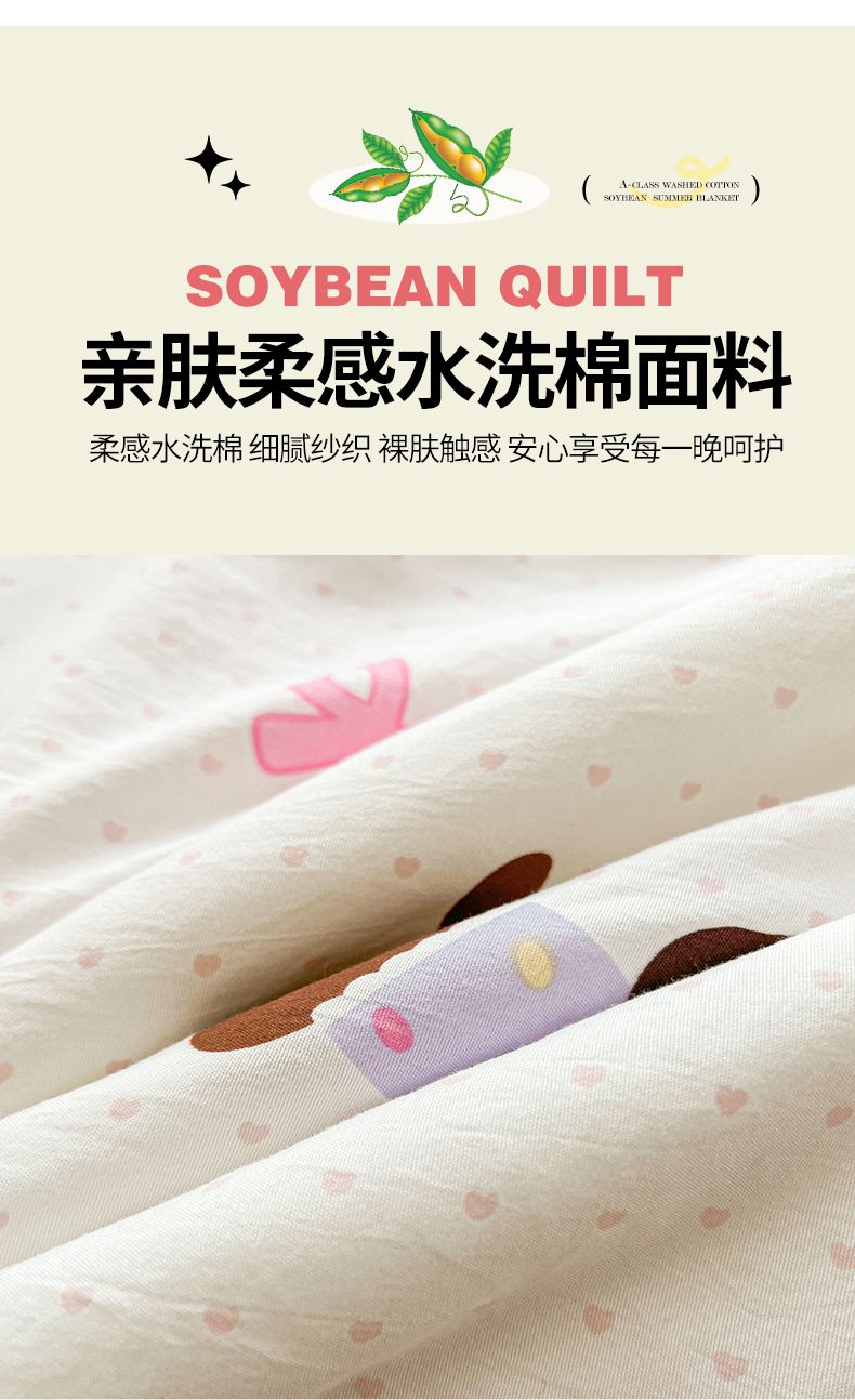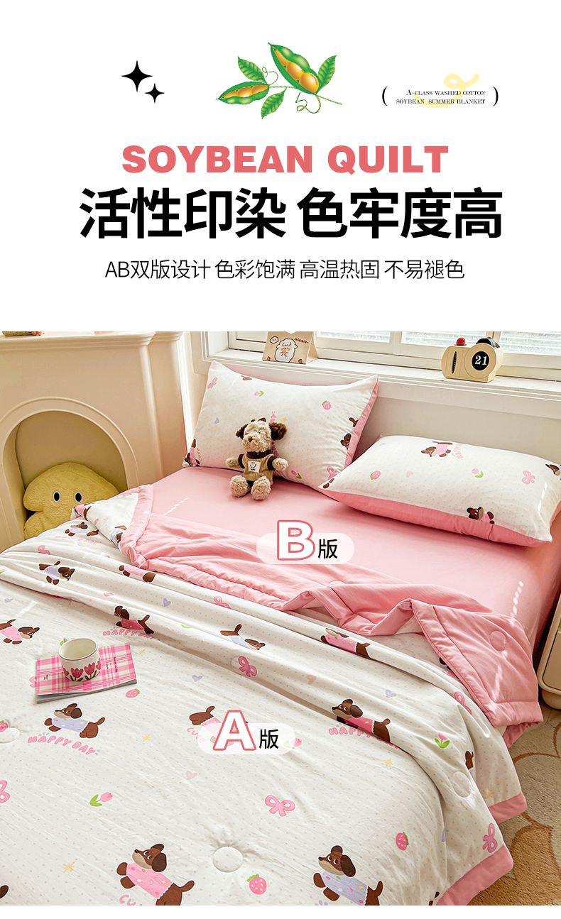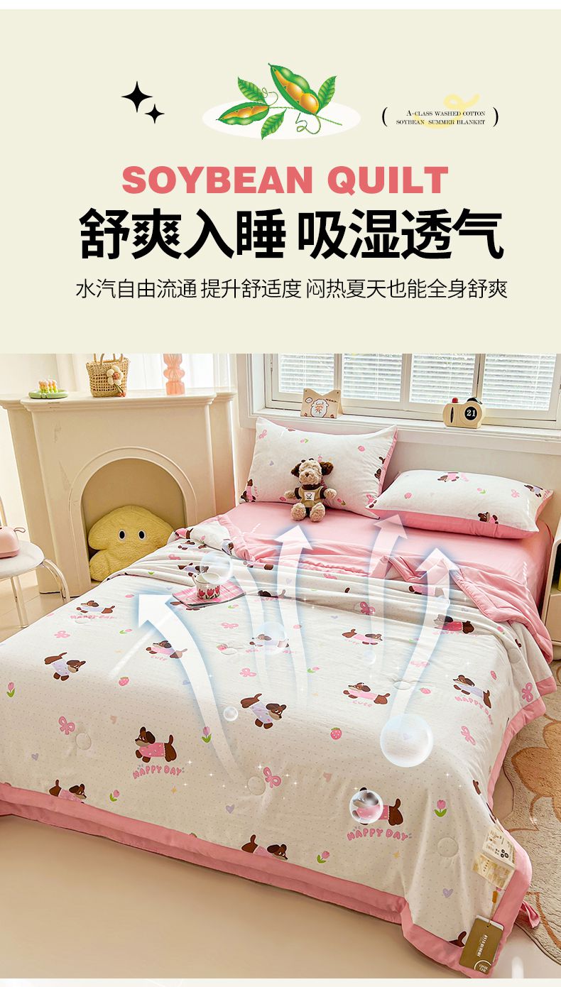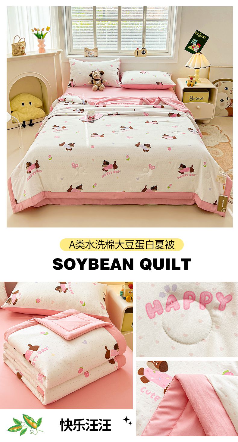 商品名称:秋泽家纺 2025春夏新款水洗棉双层纱大豆纤维夏被夏凉被空调被 快乐汪汪