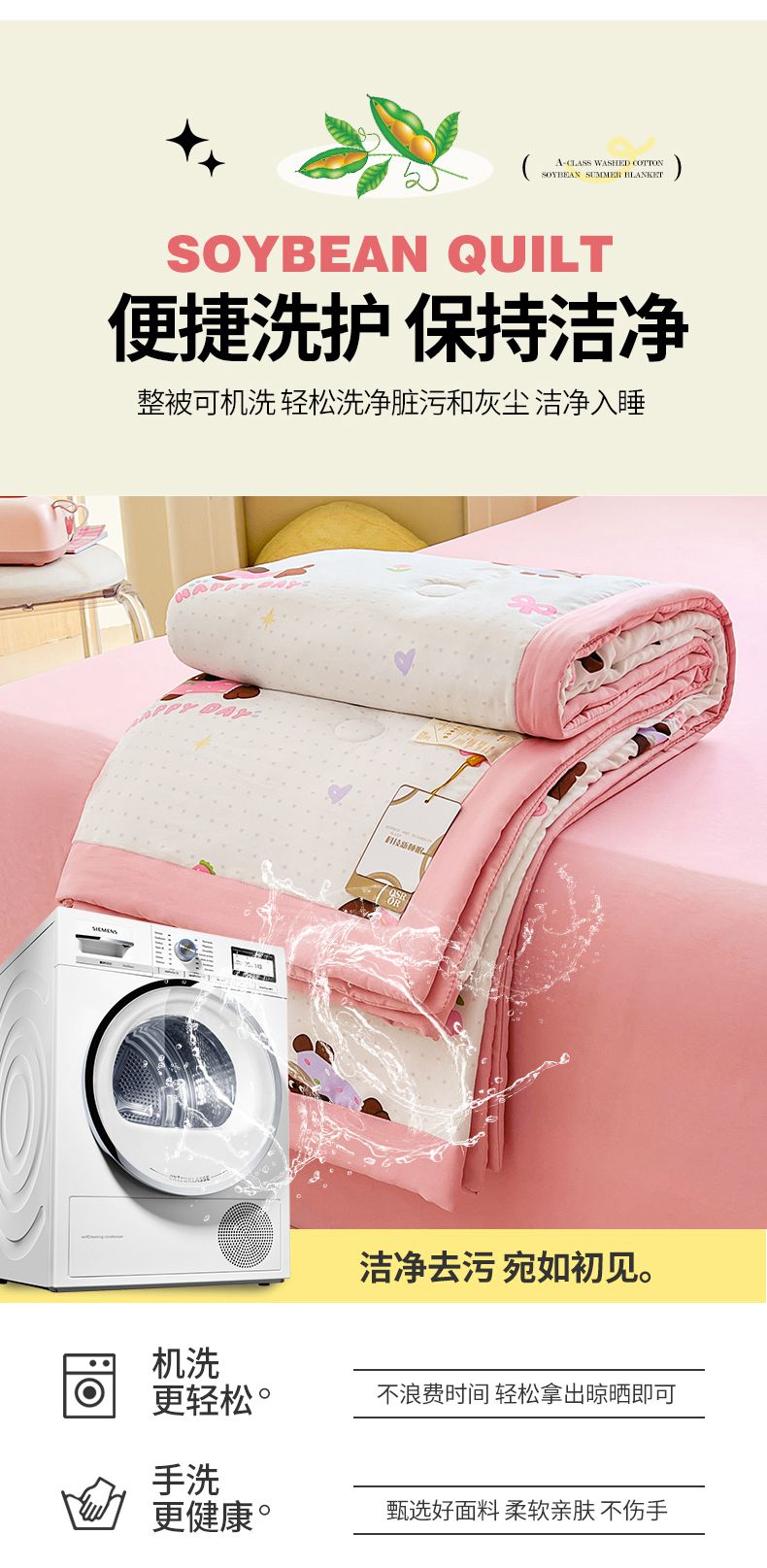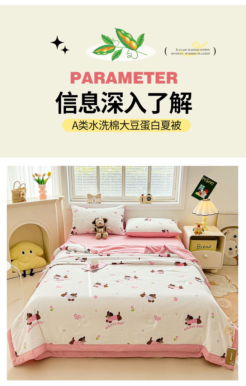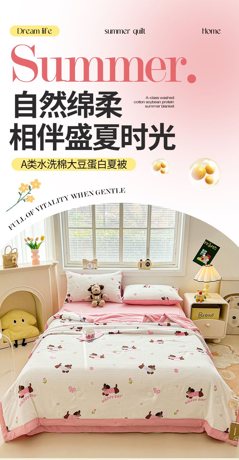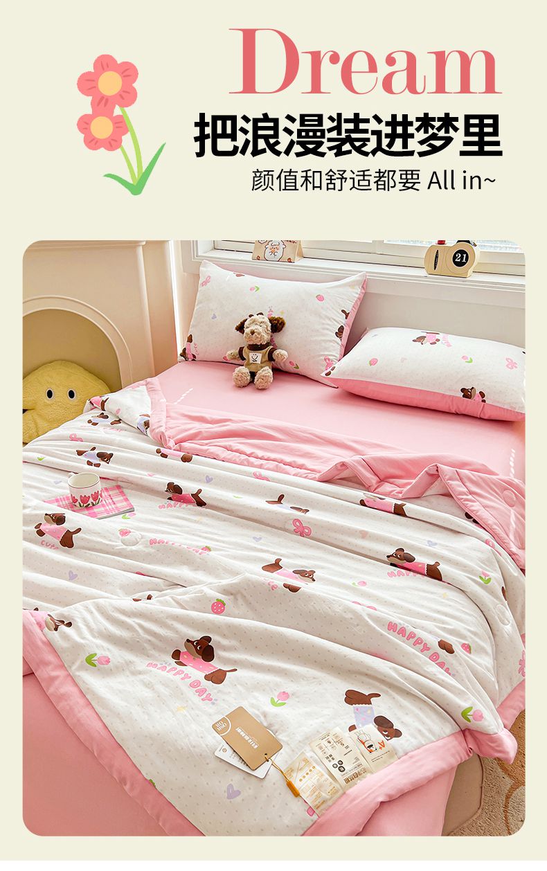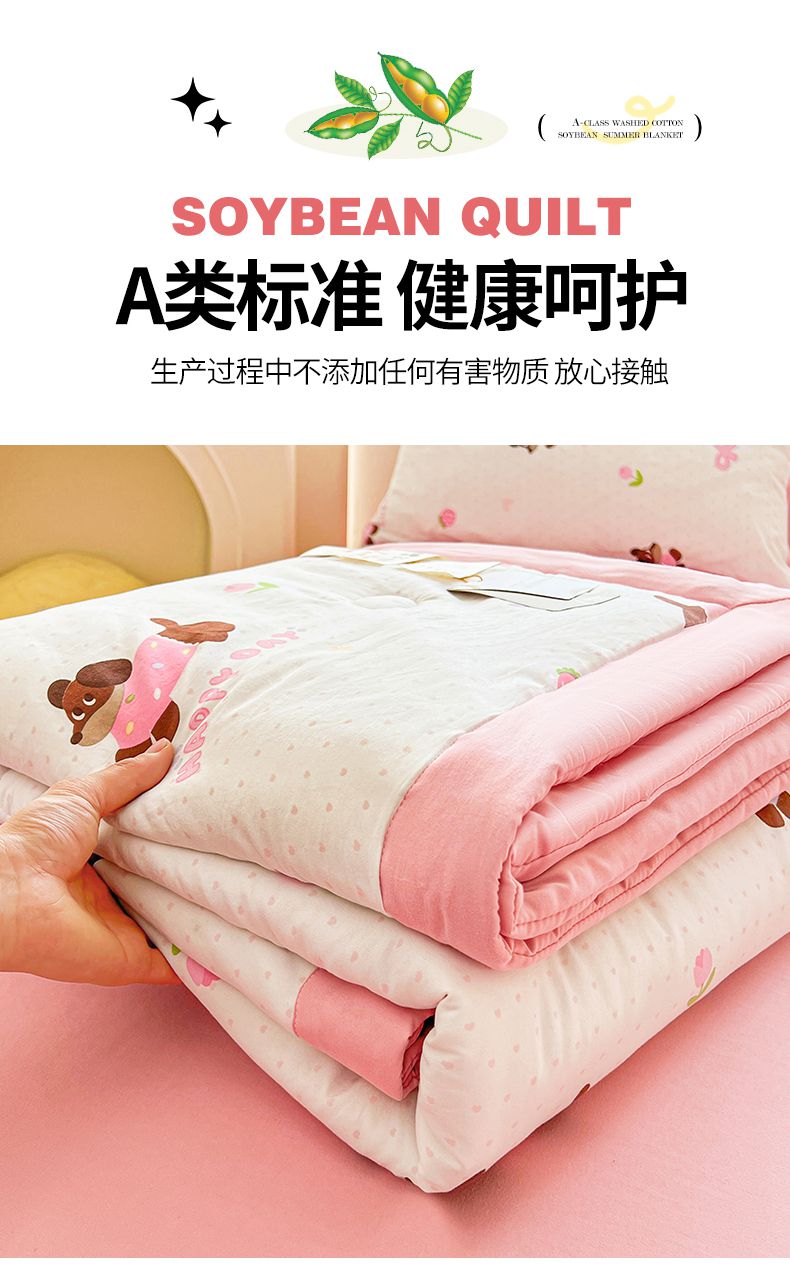 商品名称:秋泽家纺 2025春夏新款水洗棉双层纱大豆纤维夏被夏凉被空调被 快乐汪汪