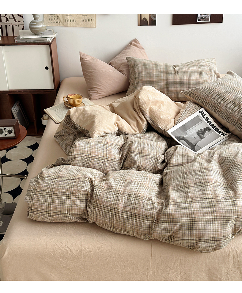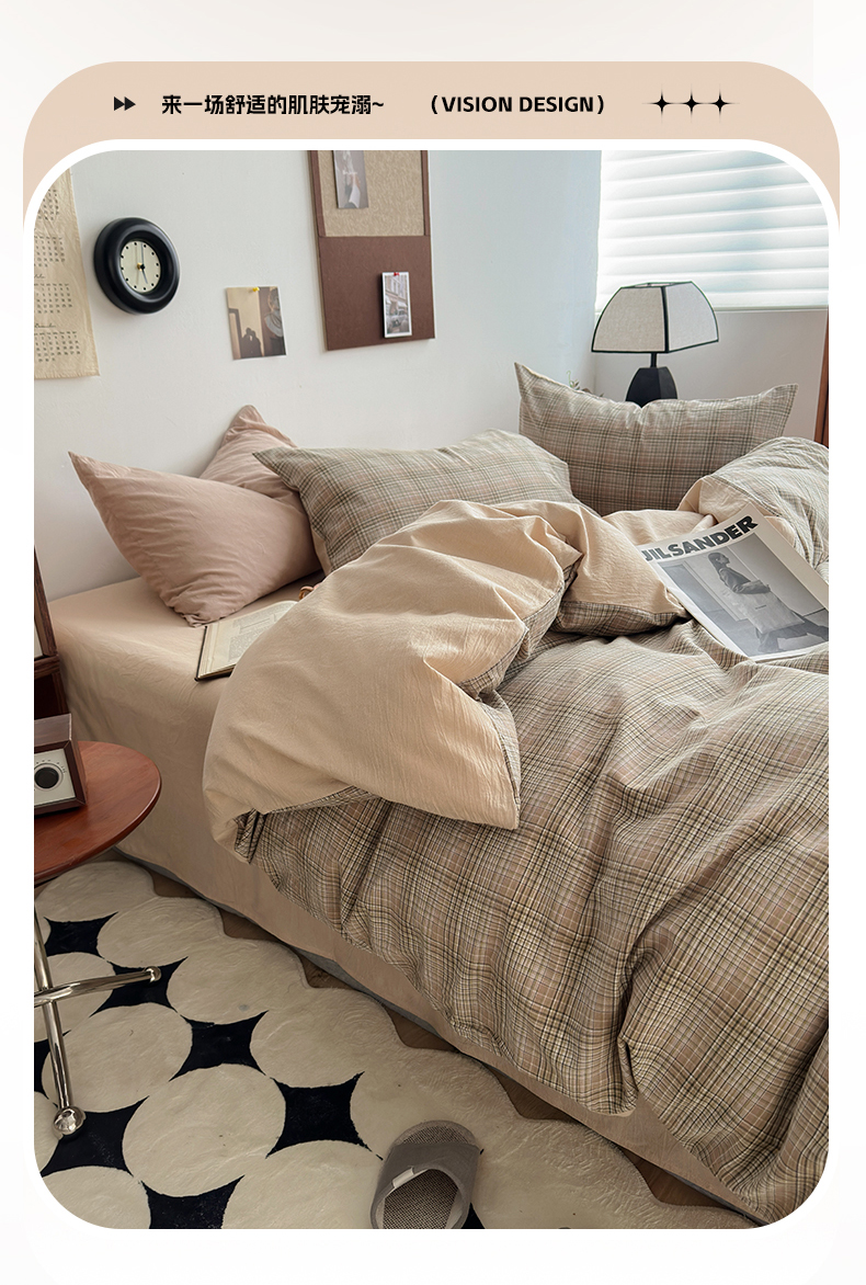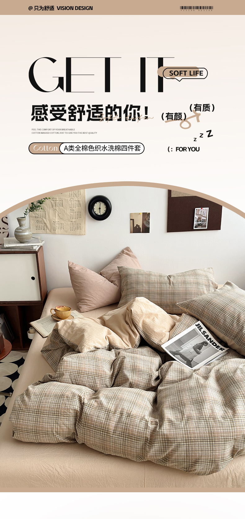 当前位置: 91家纺网 > 商品网购 > 床品套件 > 四件套 > 色织四件套 > 水洗的故事2025新款A类AB版全棉色织水洗棉四件套 仙米格-棕