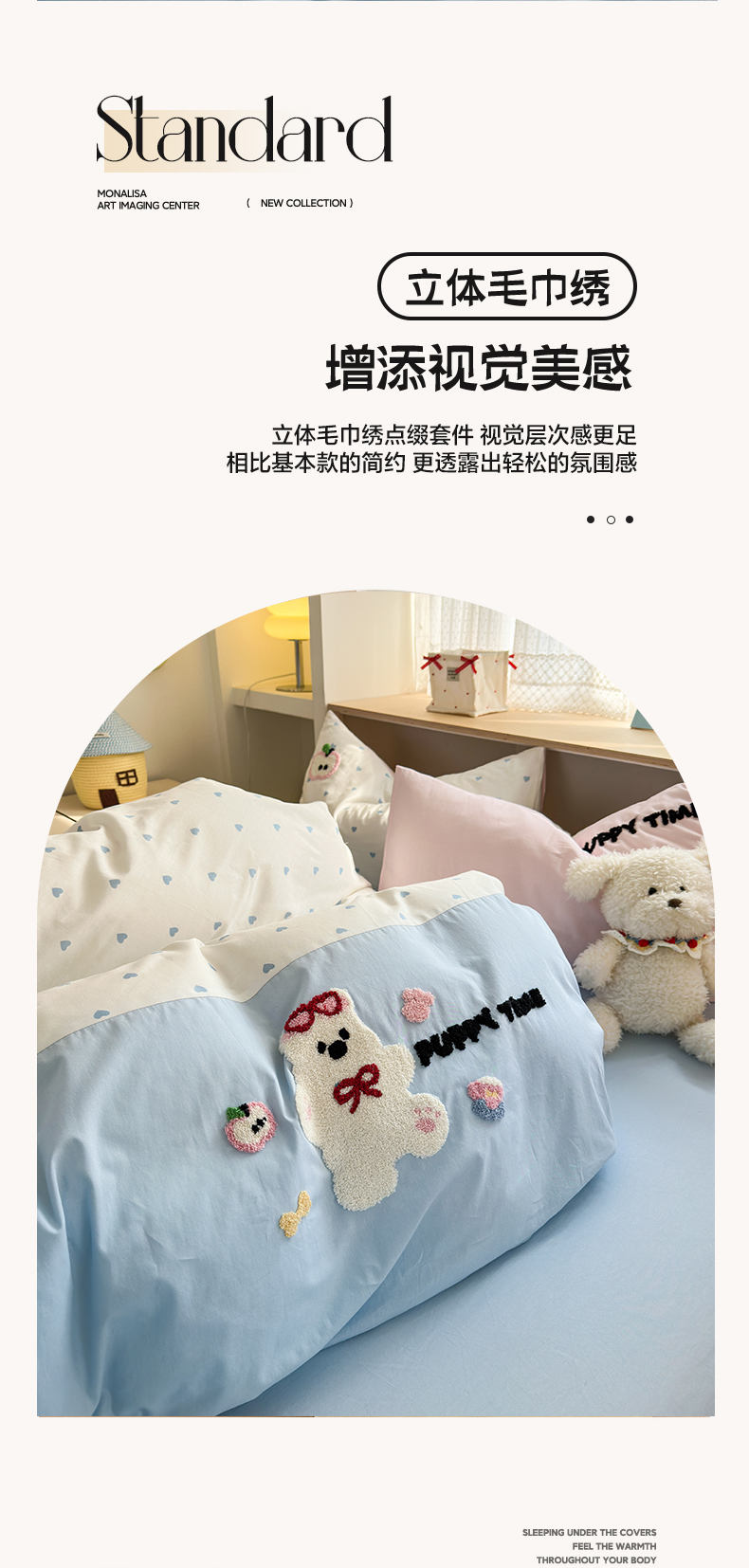 商品名称:娜娜 2025新款全棉立体毛巾绣四件套 波点小熊