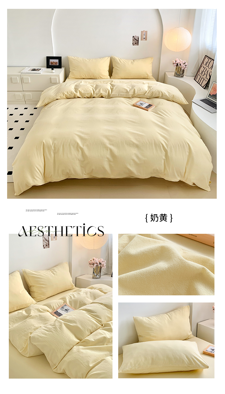 当前位置: 91家纺网 > 商品网购 > 床品套件 > 四件套 > 色织四件套 > 水洗的故事 2025新款色织水洗棉多巴胺纯色款四件套 丁香紫
