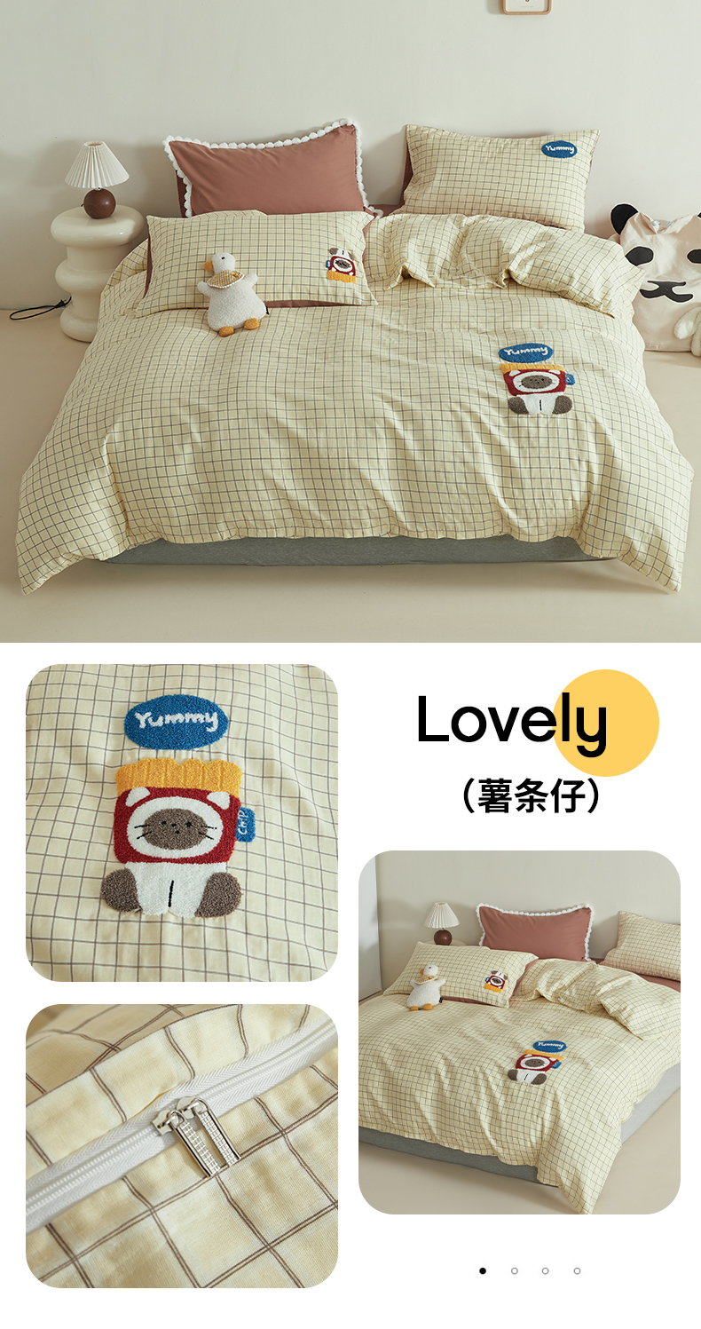 (总)怡家居 2025新款全棉纯棉磨毛绣花四件套-拼接款,格子小兔,可可腊肠,苹果小猫,曲奇饼干,五彩小煤球-咖,五彩小煤球-蓝