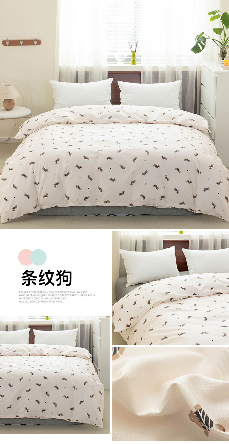 商品名称:绫韵2025春夏新款ins清新卡通碎花全棉13372精梳纯棉单被套系列 条纹狗