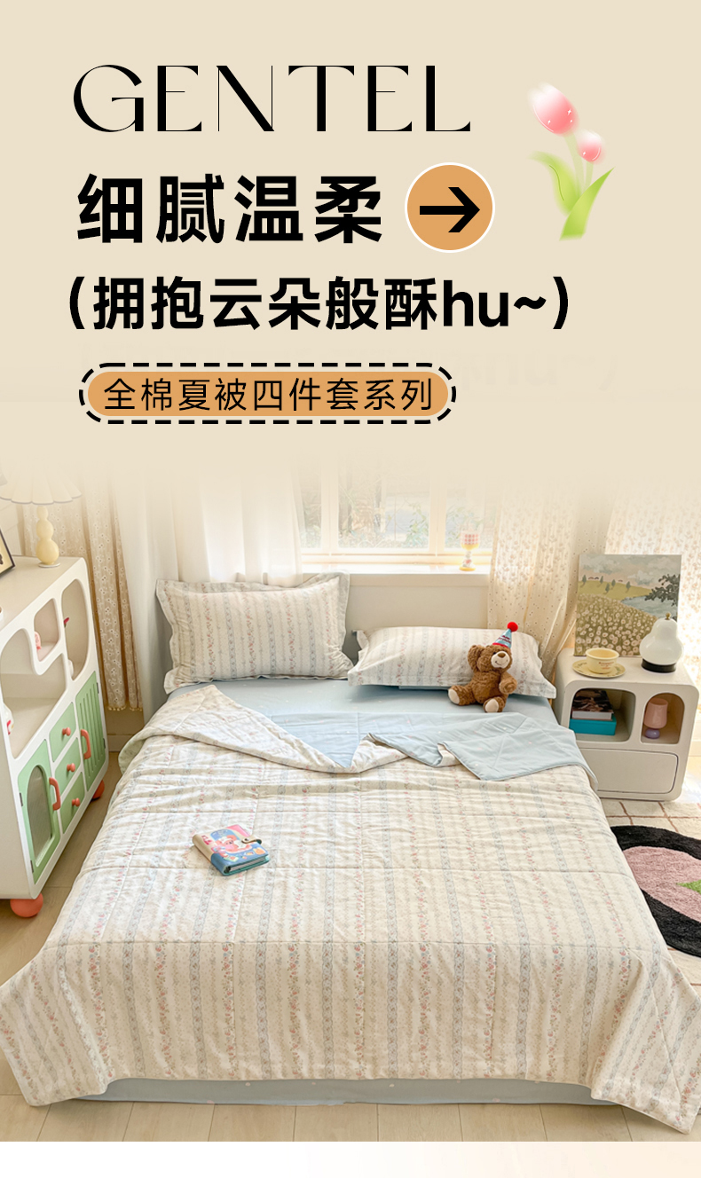 • 91家纺网 家纺一手货源 找家纺 帕拉美拉 2025新款全棉棉花夏被春秋被四件套轻悠花梦-全棉棉花