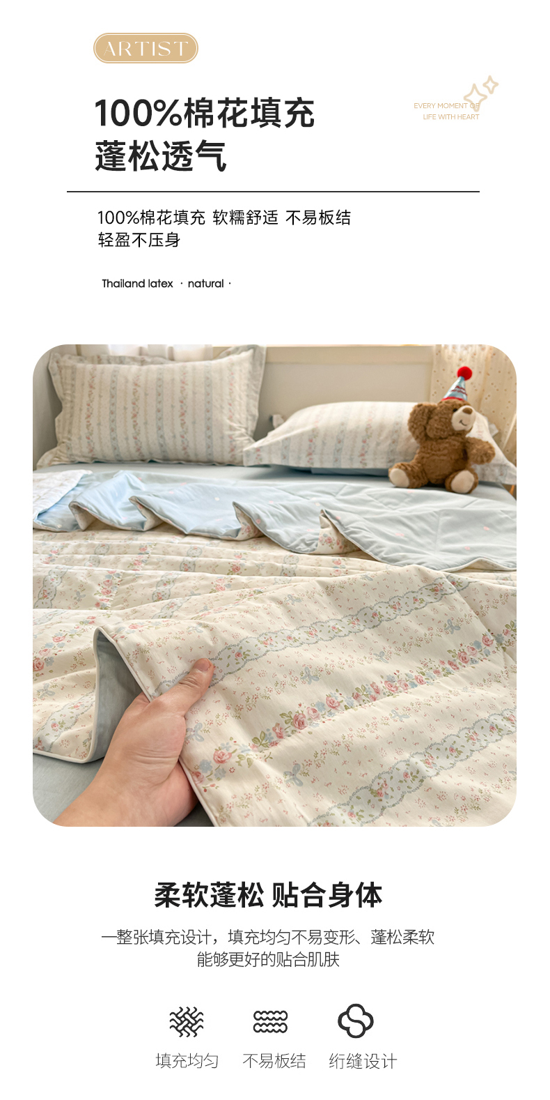 帕拉美拉 2025新款全棉棉花夏被春秋被四件套轻悠花梦-全棉棉花