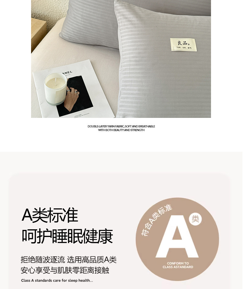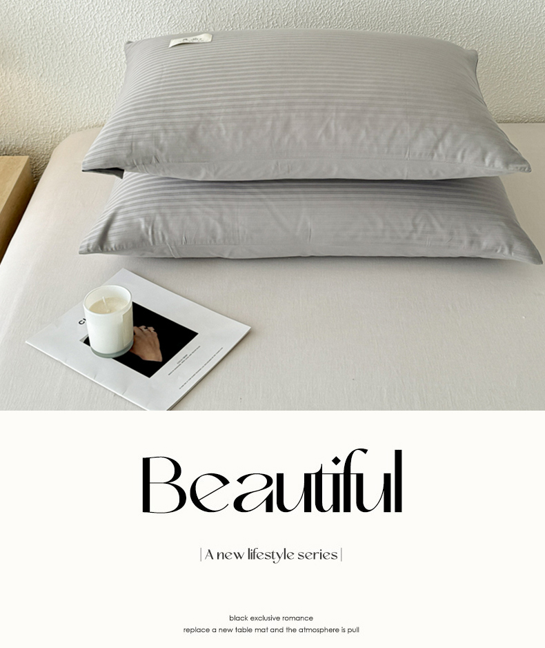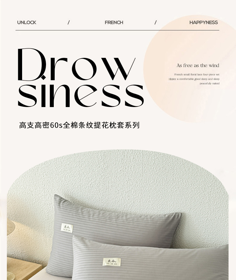 商品名称:眠博士 2025新款高支高密60支全棉条纹提花单枕套 枕套-提花雅灰