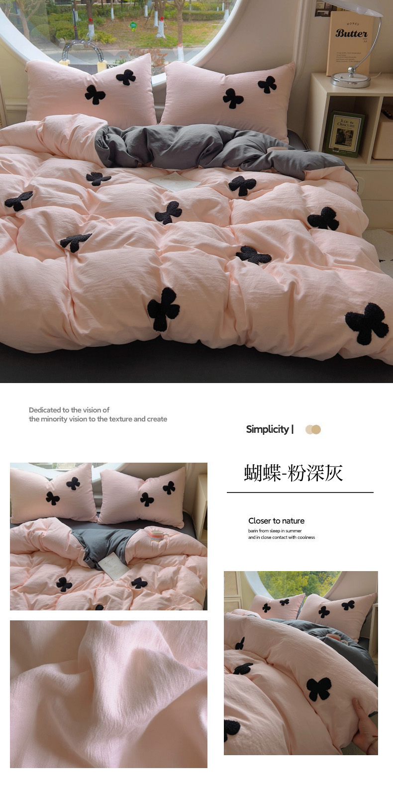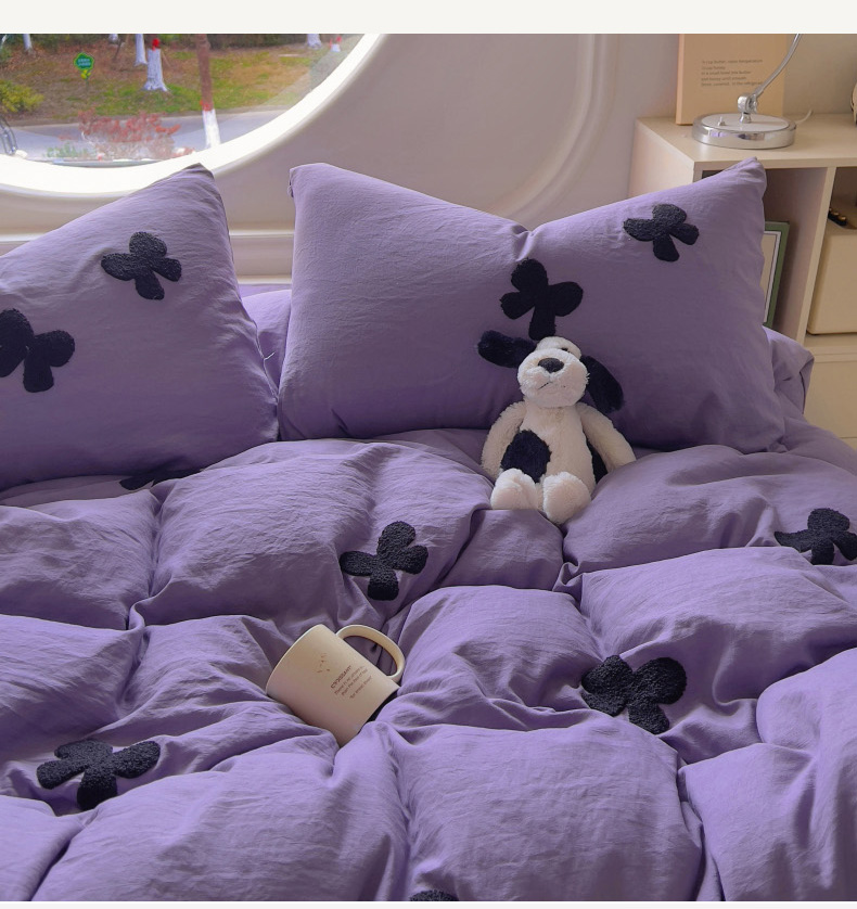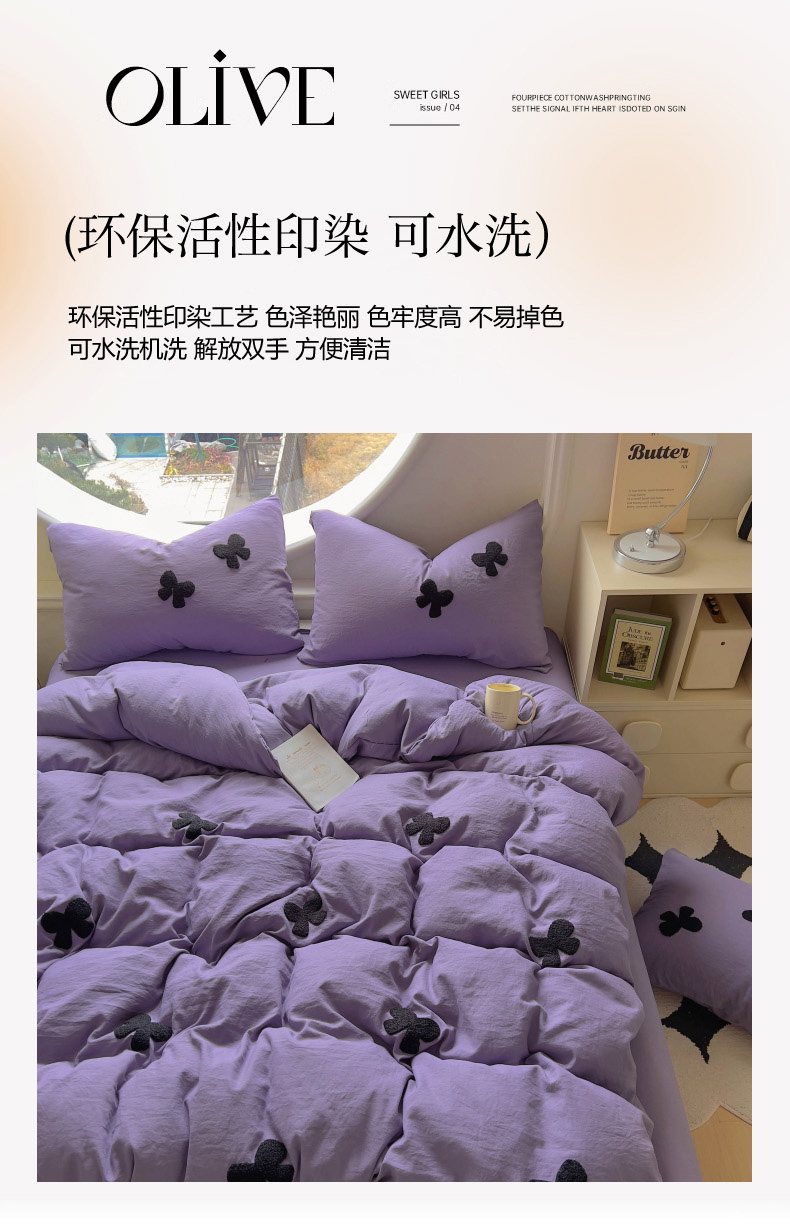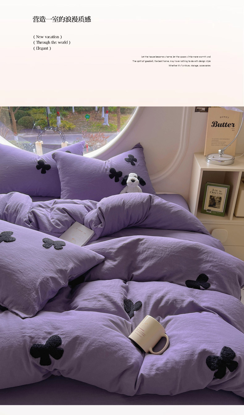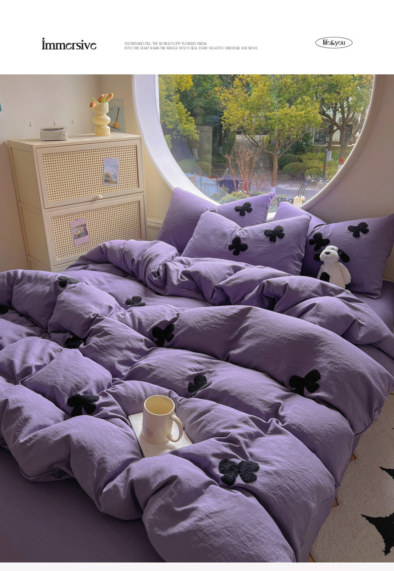 当前位置: 91家纺网 > 商品网购 > 床品套件 > 四件套 > 毛巾绣四件套 > 花伞家居 2025新款A类水洗棉蝴蝶结毛巾绣四件套 毛巾绣蝴蝶-深紫