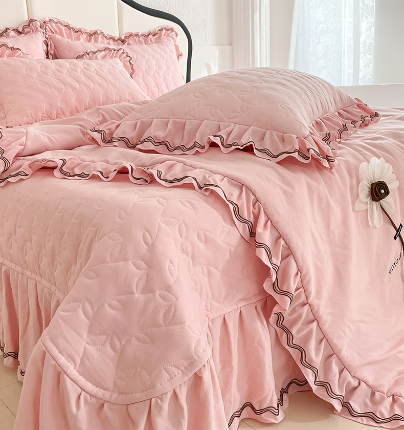 (总)金绣美居 2025新款卡通贴布绣款牛奶绒四件套-公主,公主粉,公主蓝