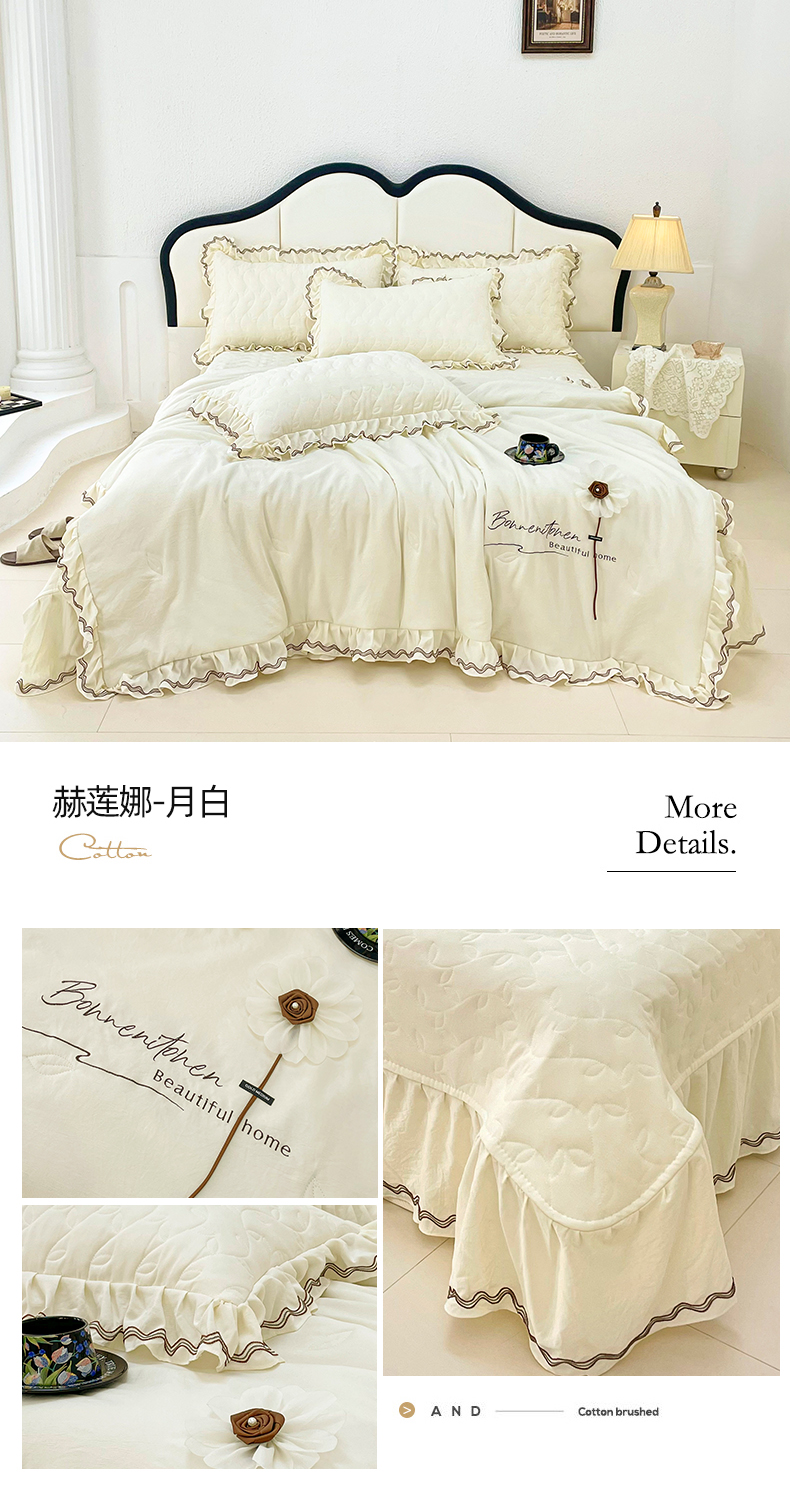 金绣美居 2025春夏韩版被套床盖款多功能夏被四件套-赫莲娜(控价不低于149) 米白