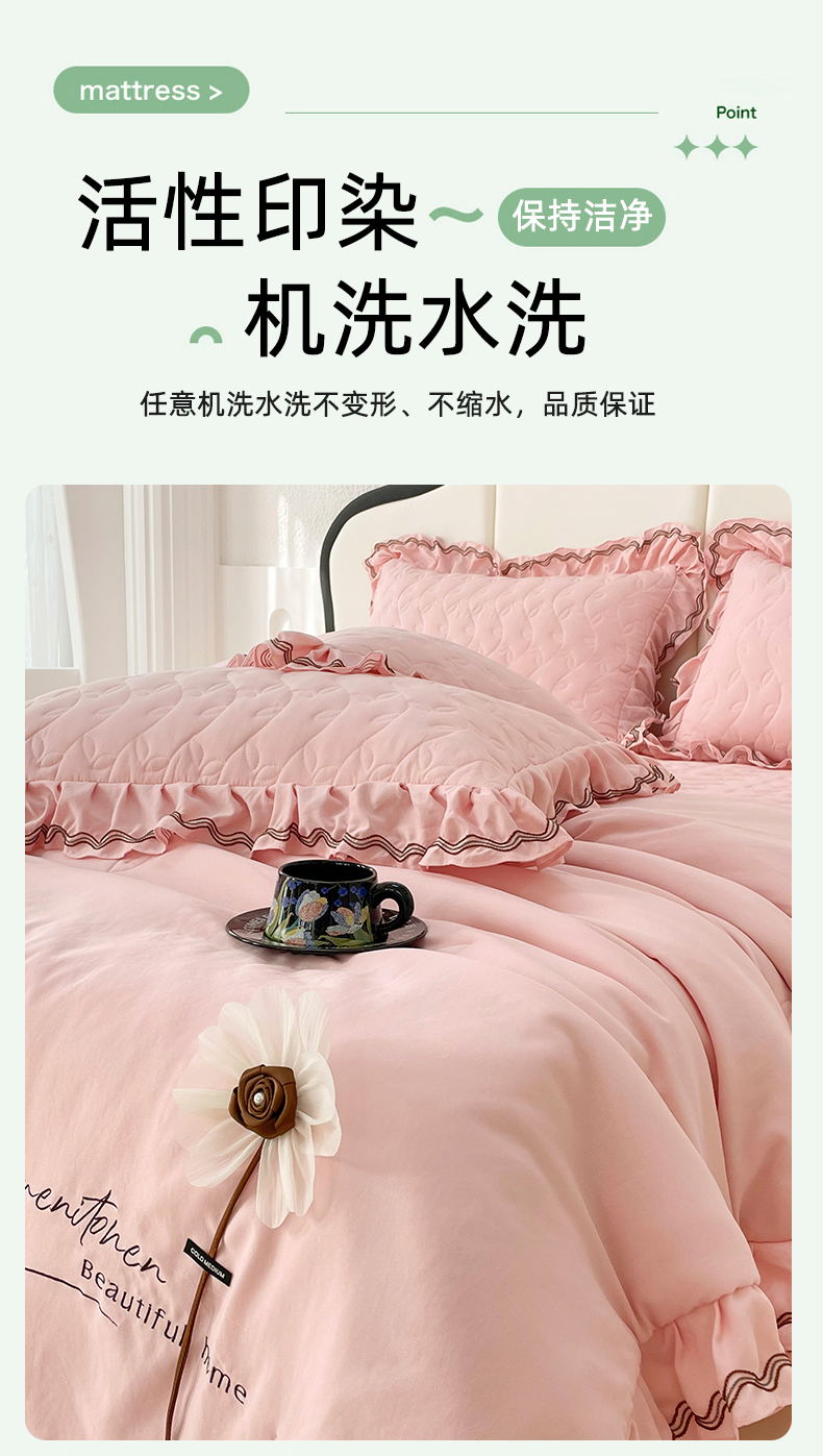 (总)金绣美居 2025新款全棉小清新韩版印花+绣花双面可用床盖四件套-花丛兔,花丛兔-浅绿,花丛兔-粉色,花丛兔-紫色