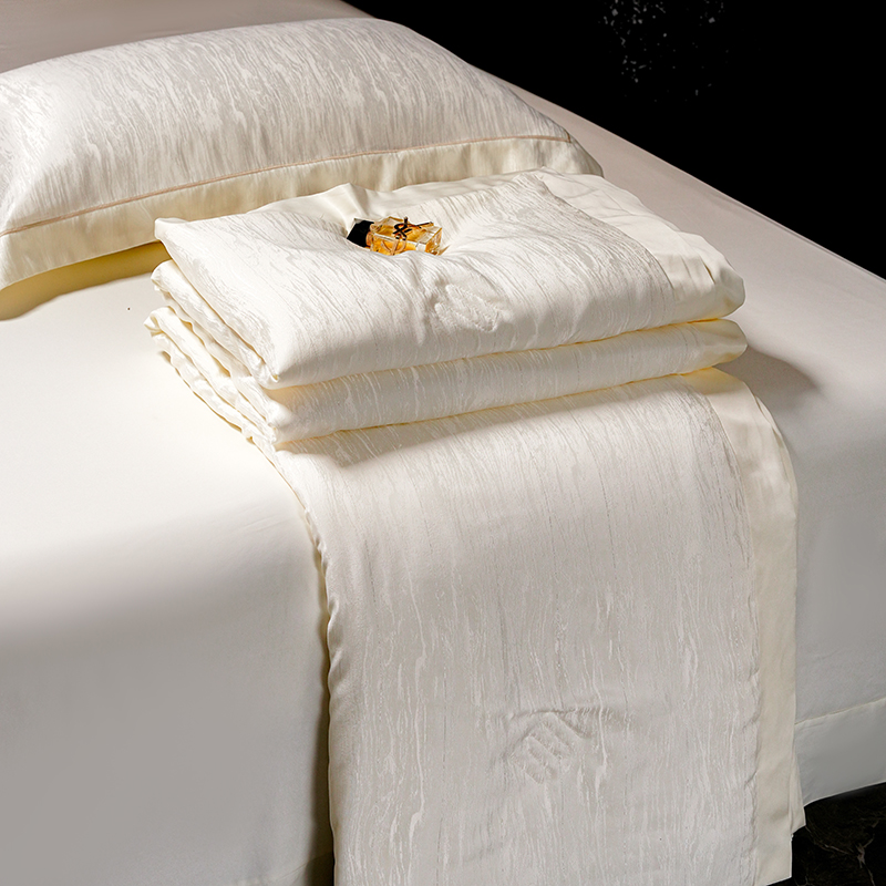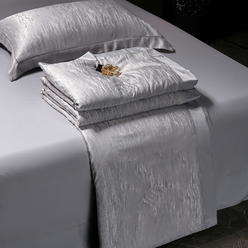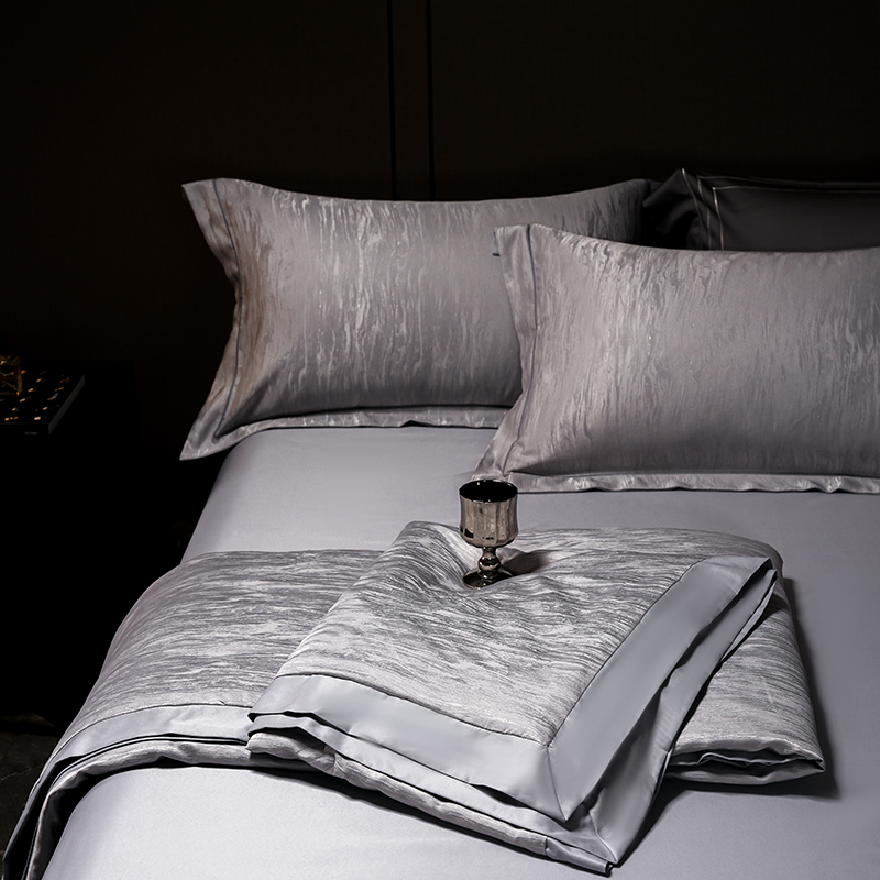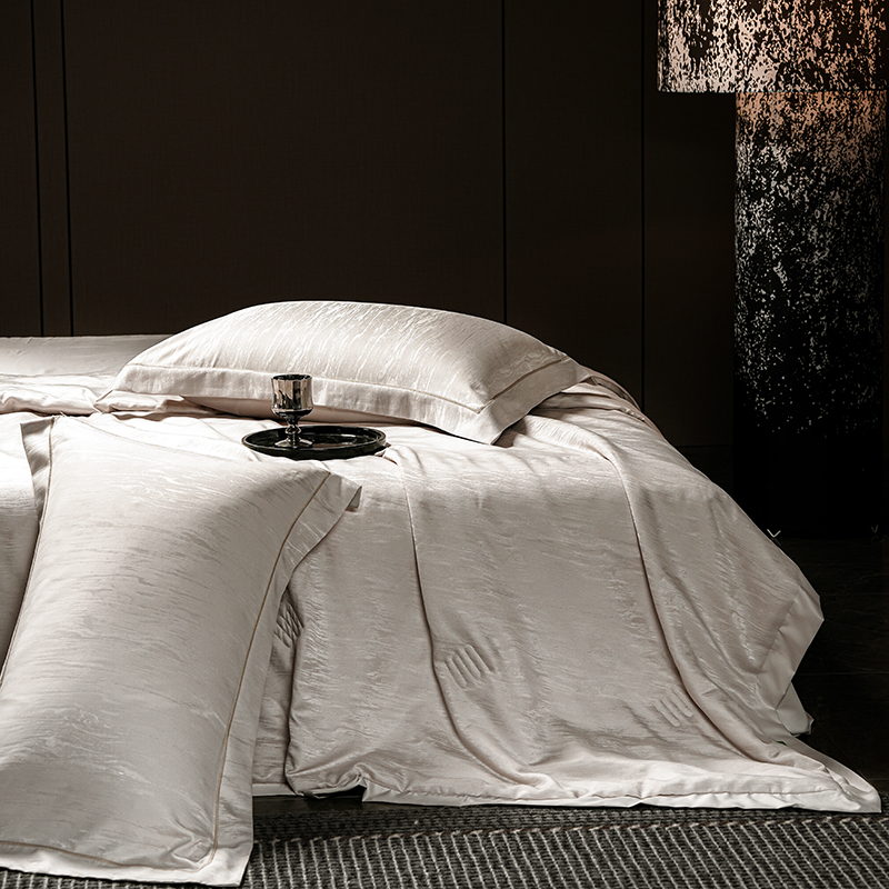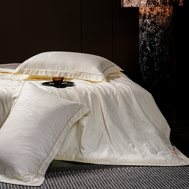 丽卡家纺 2025新款翡丽天丝提花夏被四件套 石纹-米灰
