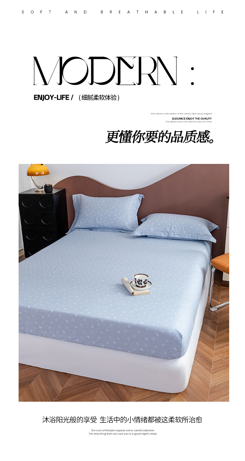 • 91家纺网 家纺一手货源 找家纺 锦罗绣 2025新款A类全棉双层纱单床笠 竹影