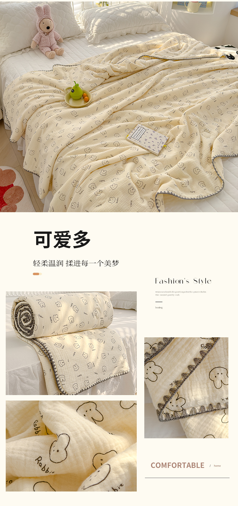 商品名称:芯恋 2025新款母婴级全棉皱皱纱儿童被双层纱夏被 可爱多